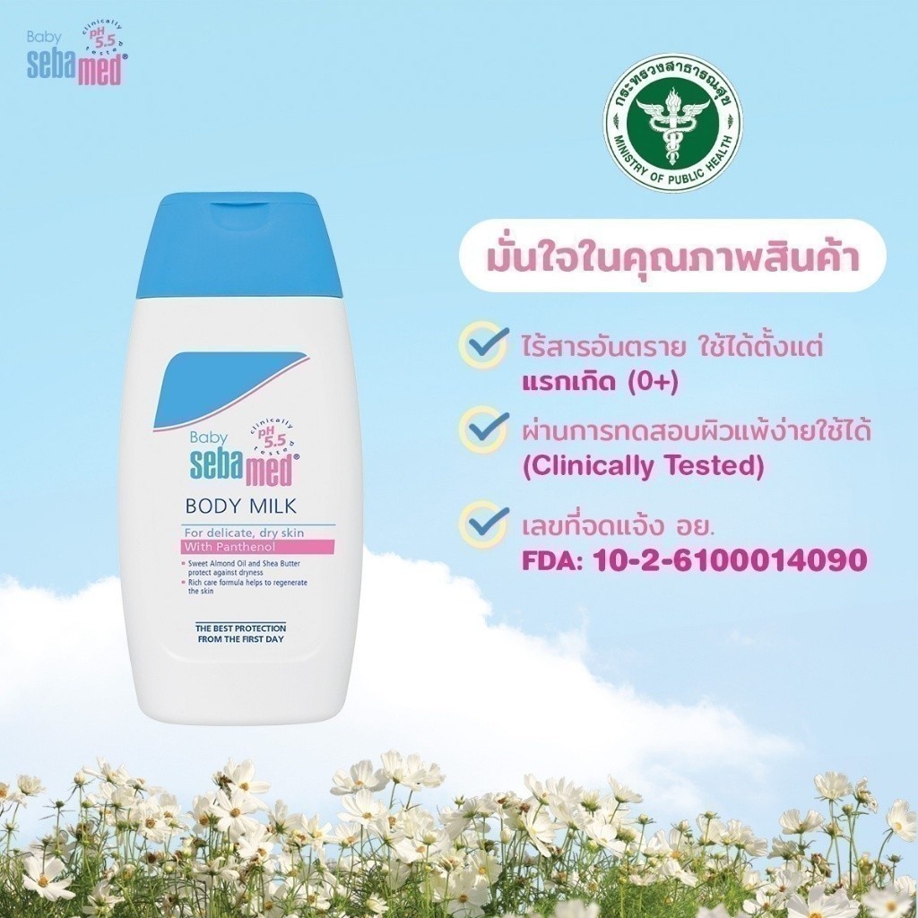 SEBAMED BABY BODY-MILK (200ML) โลชั่นน้ำนมเด็ก สำหรับผิวแห้ง (200มล) เบบี้ ซีบาเมด บอดี้ มิลค์ (200ML)
