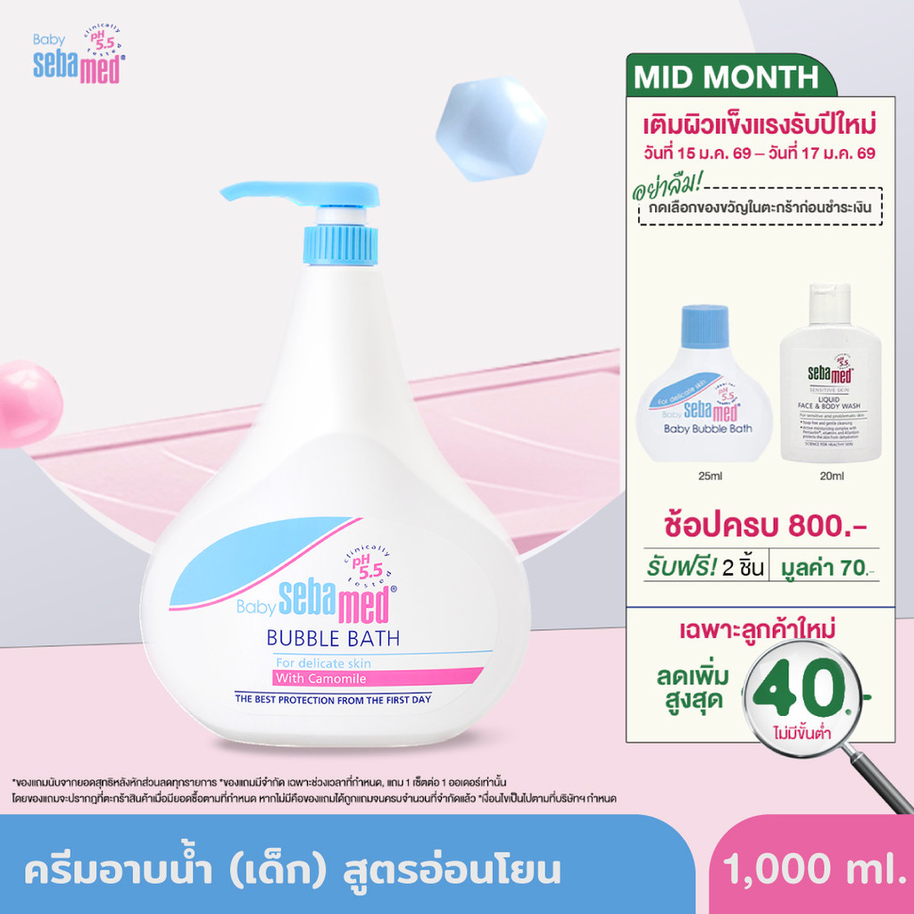 SEBAMED BABY BUBBLE BATH pH 5.5 (1,000ML) ผลิตภัณฑ์อาบน้ำสำหรับเด็ก เบบี้ ซีบาเมด บับเบิ้ล บาธ (1,000มล)