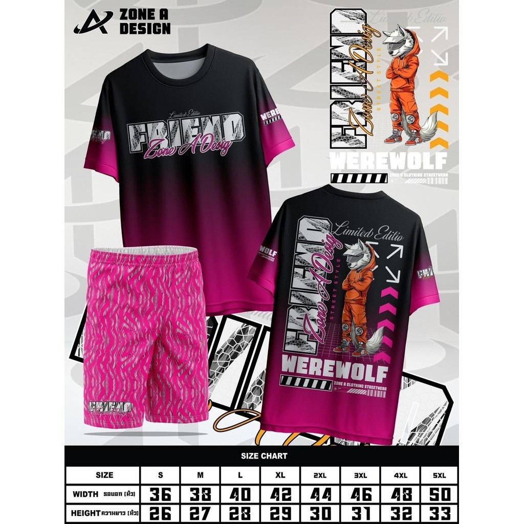 เสื้อพิมพ์ลาย Zone A ชุดทรงเอ พิมพ์ลาย FRIEND WEREWOLF ชุดวัยรุ่นลายสวยๆ