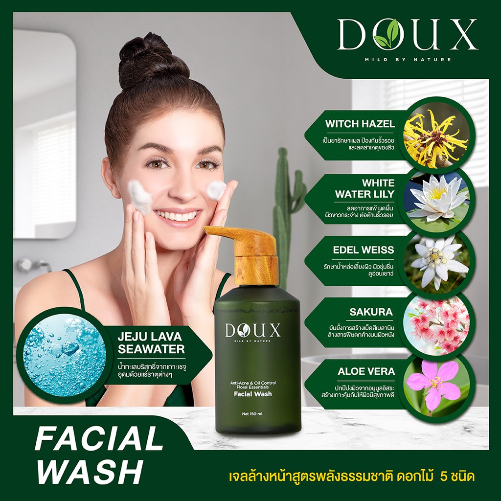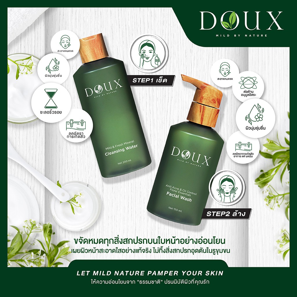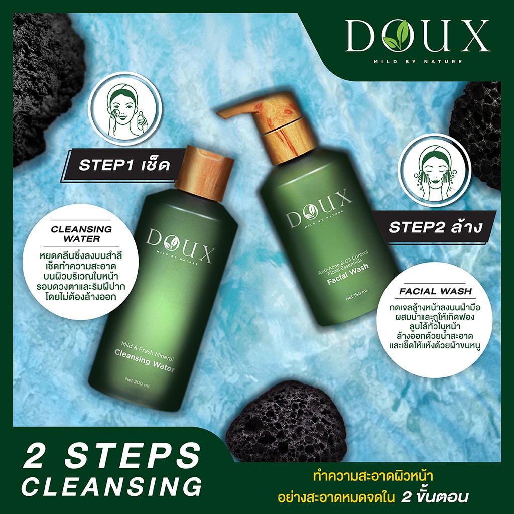 DOUX (ดูซ) Happy Box Set เซ็ตทำความสะอาดผิวหน้าครบวงจร (คลีนซิ่ง+เจลล้างหน้า+ผ้าขนหนูนาโน+สำลี) ส่งฟรี !!
