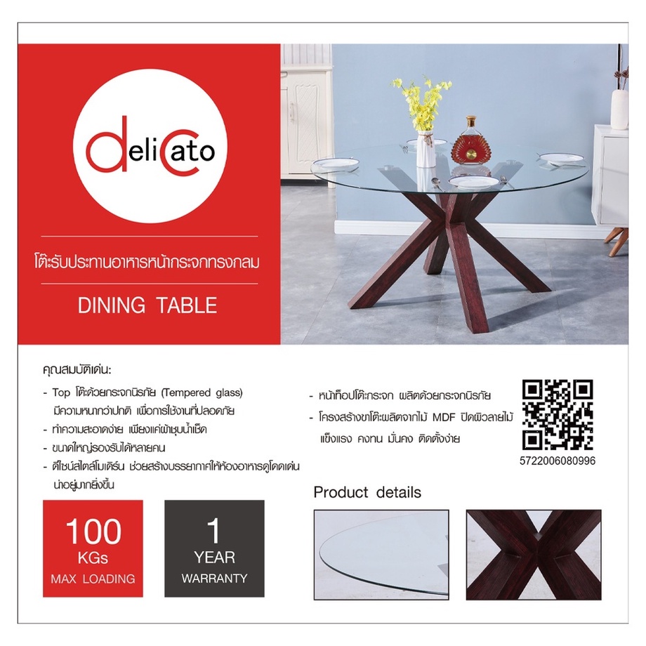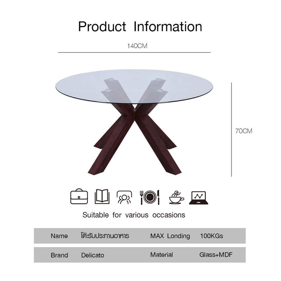 GlobalHouse Delicato โต๊ะรับประทานอาหาร ขนาด140x140x70ซม. รุ่น Harper สีน้ำตาล สินค้าของแท้คุณภาพดี