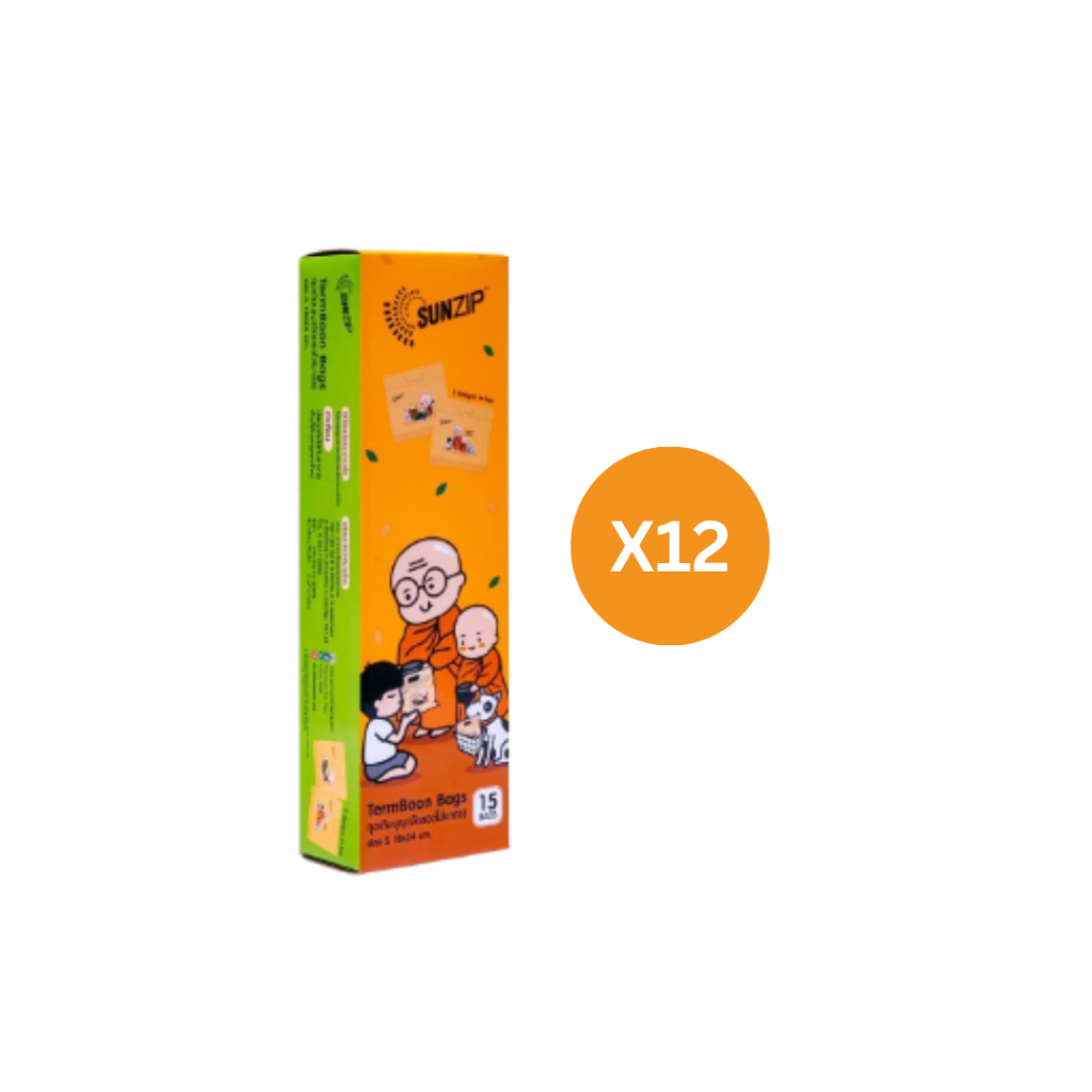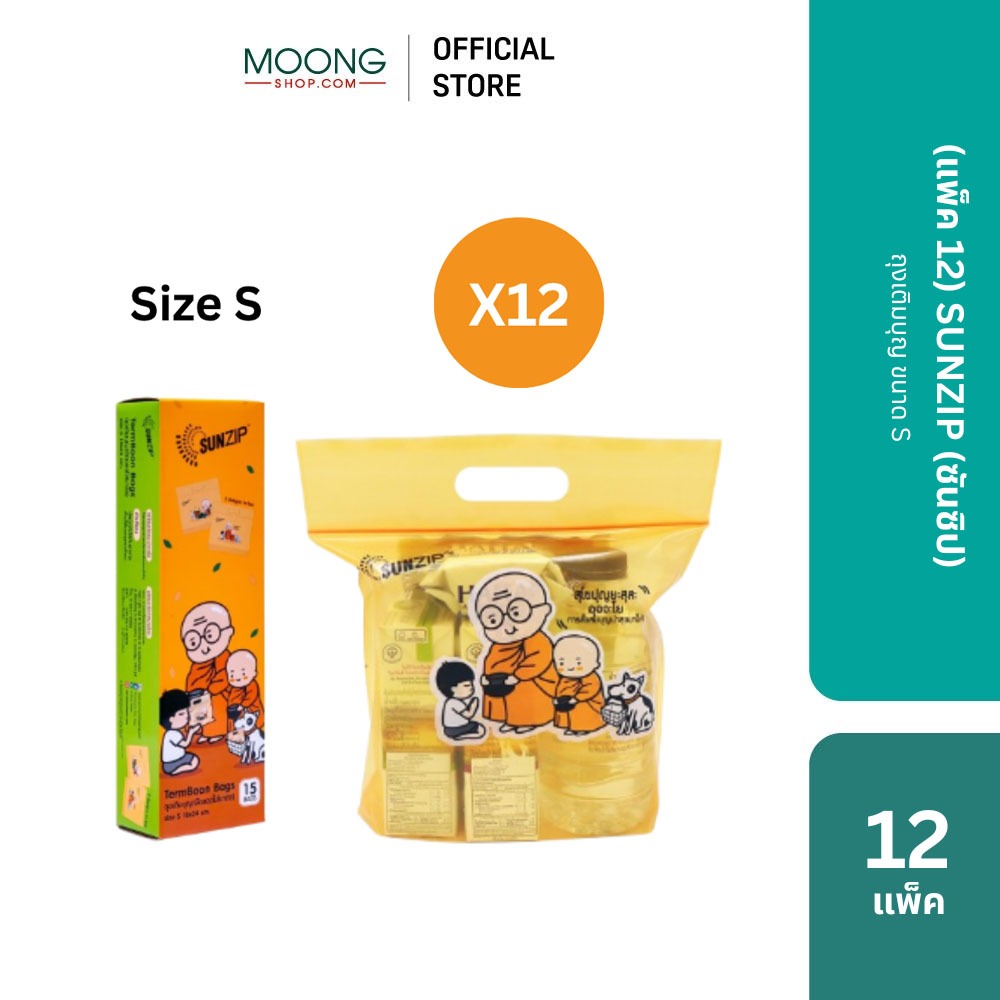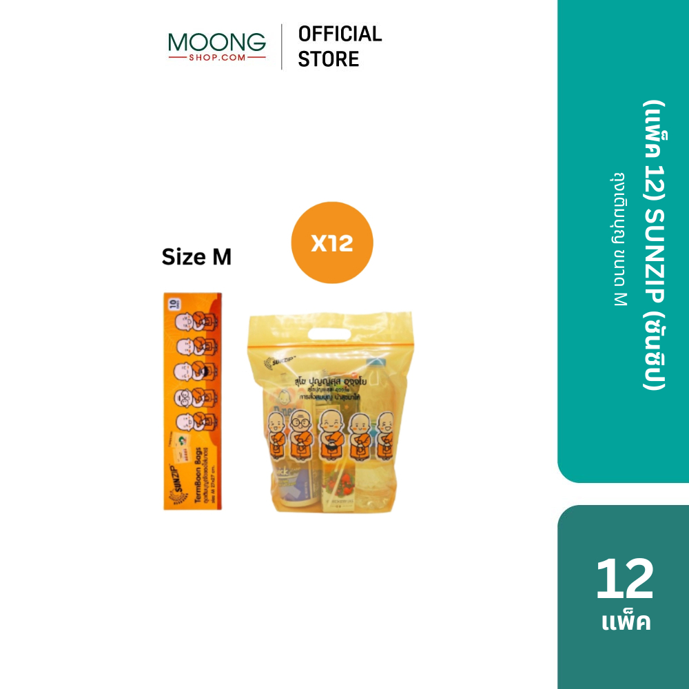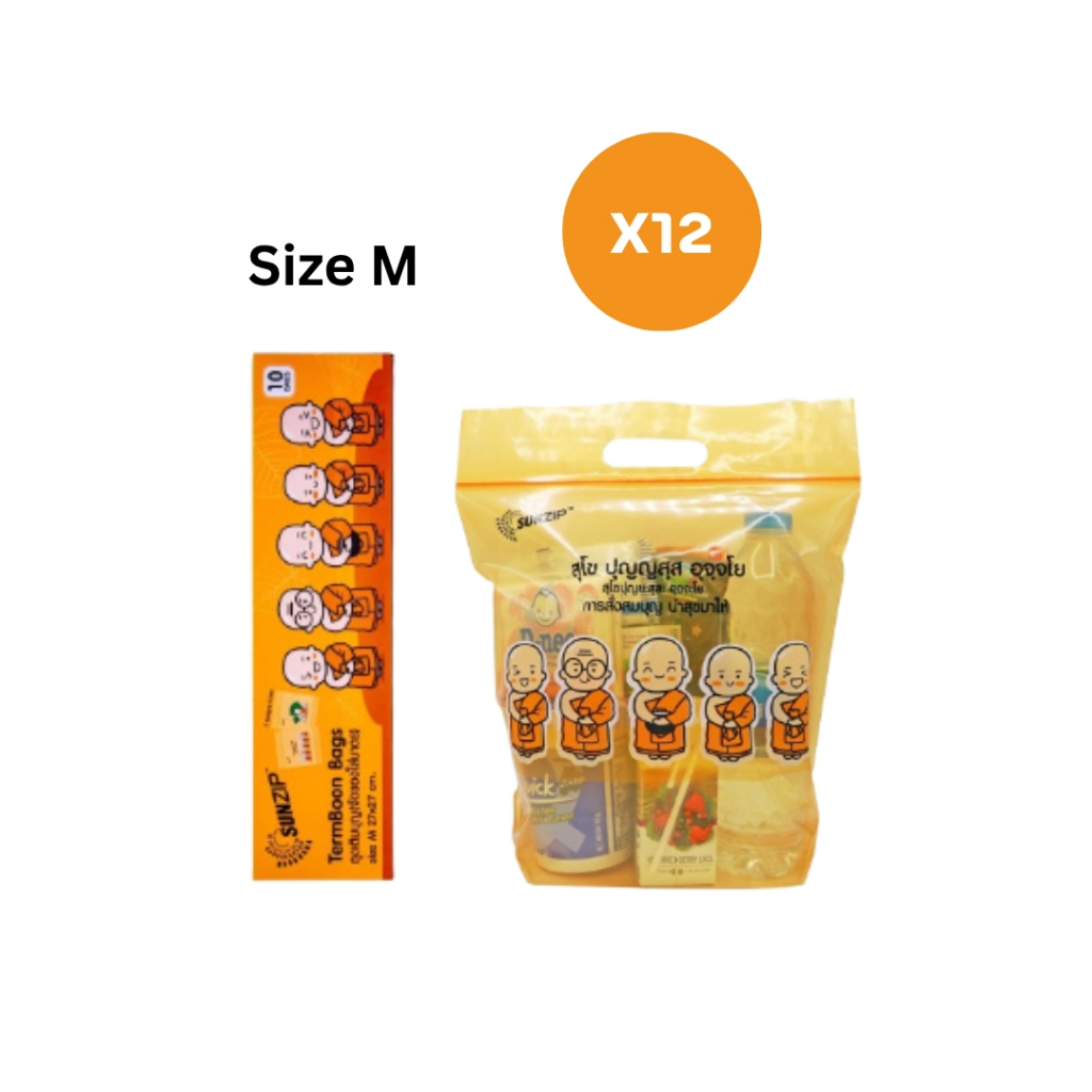 (แพ็ค12) SUNZIP (ซันซิป) ถุงเติมบุญ ขนาด S และ M