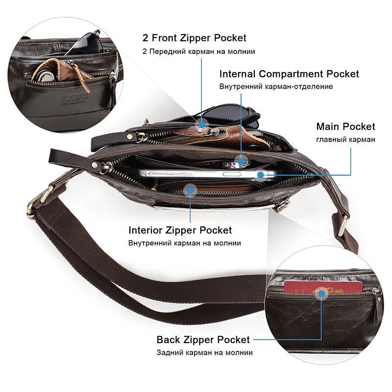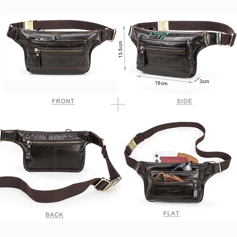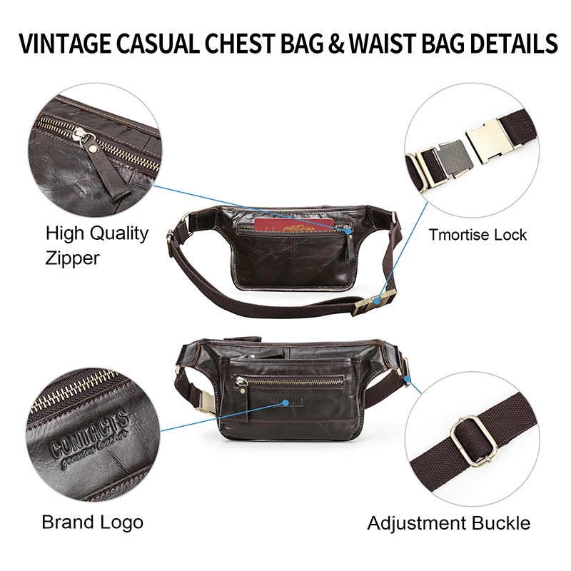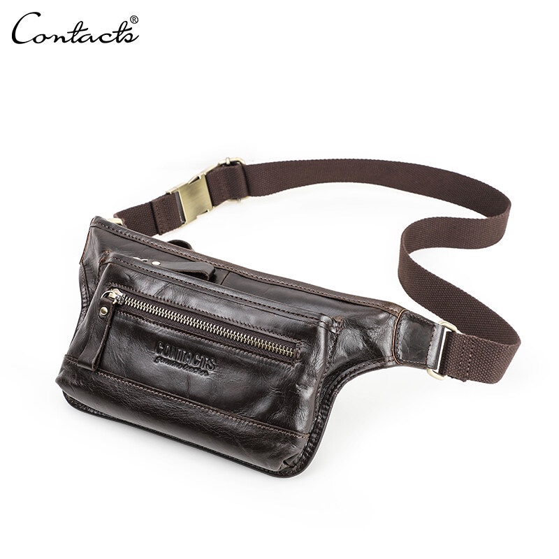 CONTACT'S กระเป๋าคาดอก กระเป๋าคาดเอว หนังแท้ ลําลอง ใส่โทรศัพท์มือถือได้ เหมาะกับการเดินทาง สําหรับผู้ชาย