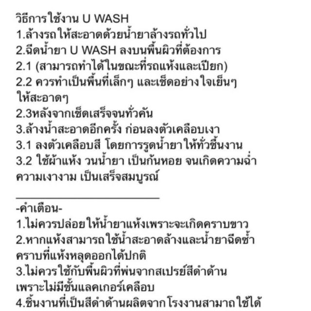 U wash 1 ขวด แถมผ้าไมโครไฟเบอร์ 1 ผืน (เจ้าเก่าของแท้100%) น้ำยาระเบิดคราบขี้ไคลรถทุกชนิด