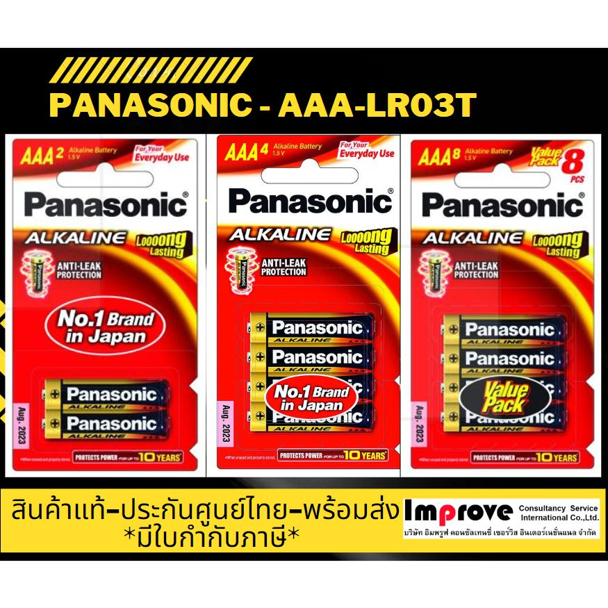 พร้อมส่ง-Pana AAA-alkaline ถ่านขนาด AAA-LR03T ยี่ห้อ Panasonic อัลคาไลน์ แพ็ค 2/4/8 ก้อน-แท้-รับประกันศูนย์ไทย