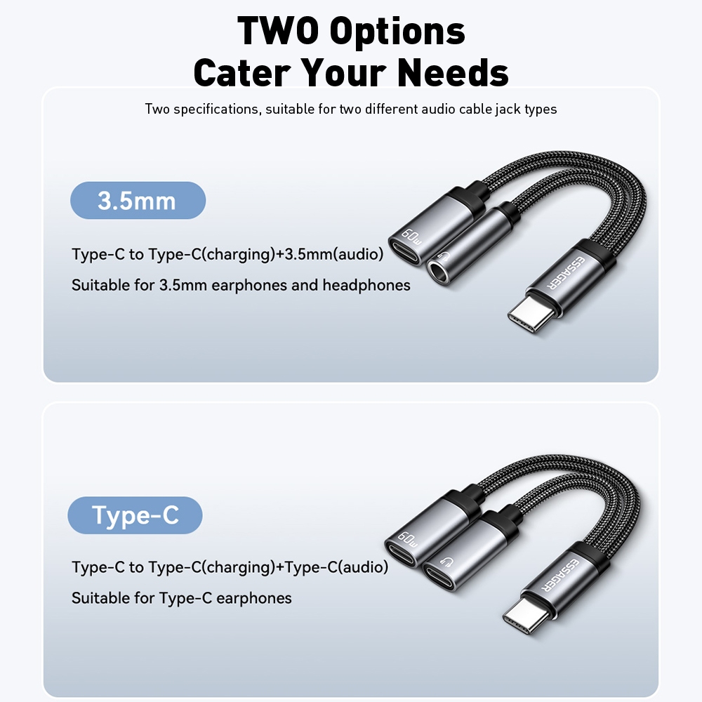 Essager 2 in 1 Type-C ถึง 3.5 มม./Type-C ตัวแปลงเสียง + สายชาร์จ