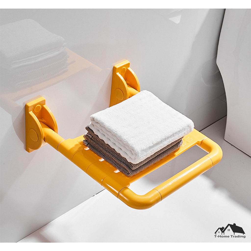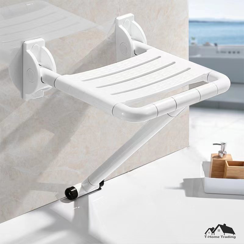 เก้าอี้อาบน้ำติดผนัง พับได้ 90° รับน้ำหนัก 120–160 กก. มีขารองรับ กันลื่น ประหยัดพื้นที่ นั่งสบาย ไม่บาดผิว BE77