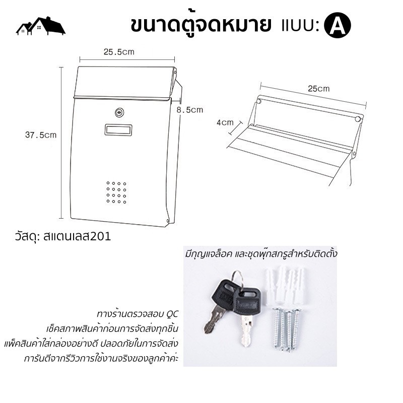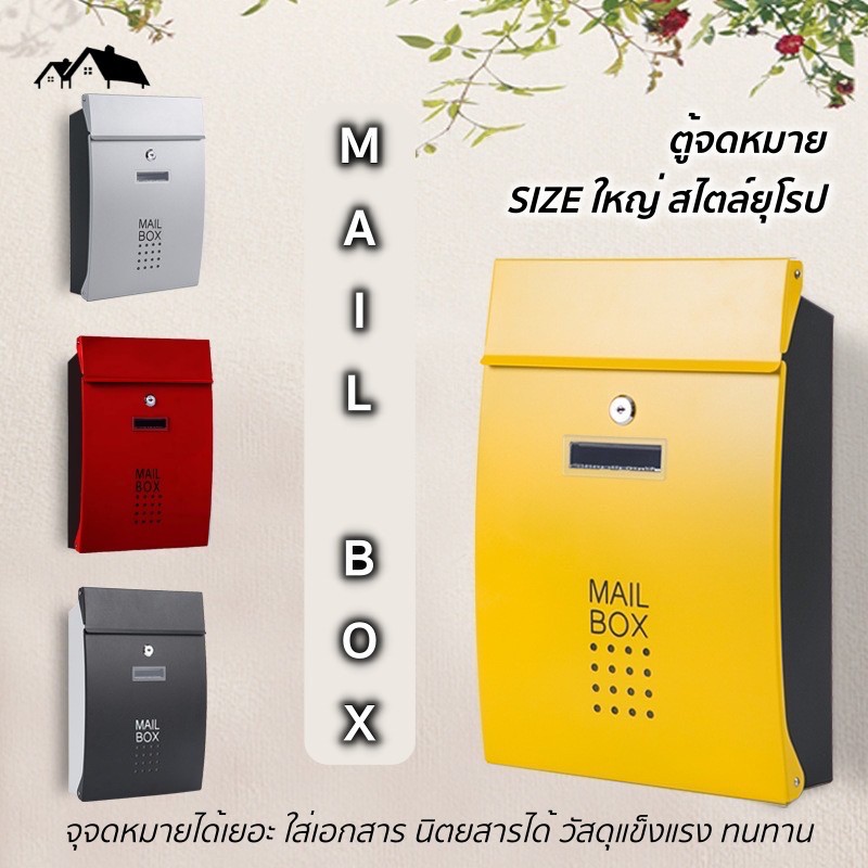 ตู้จดหมาย กล่องจดหมาย MAIL BOX ขนาดใหญ่ สไตล์ยุโรป จุจดหมายได้เยอะ ใส่ซองเอกสารA4 นิตยสารได้ วัสดุแข็งแรง ทนทาน [HA-01]