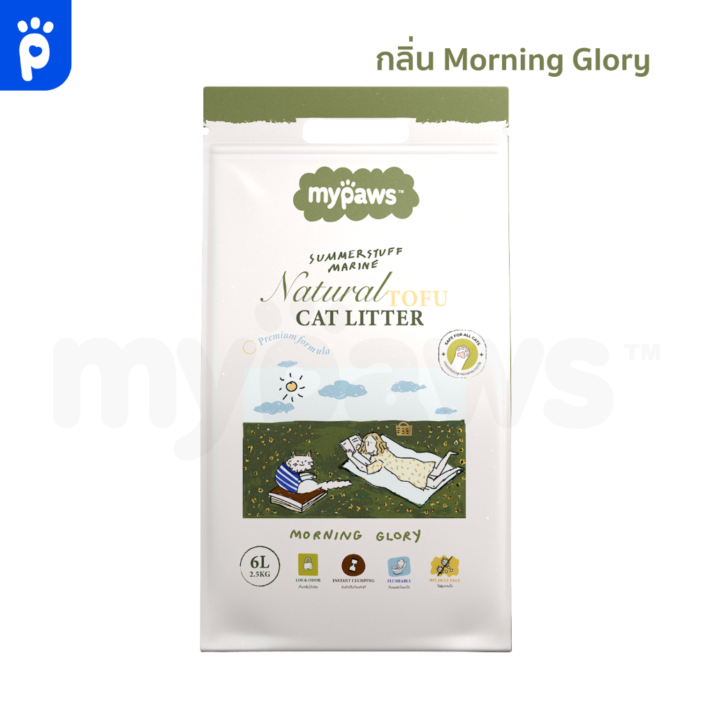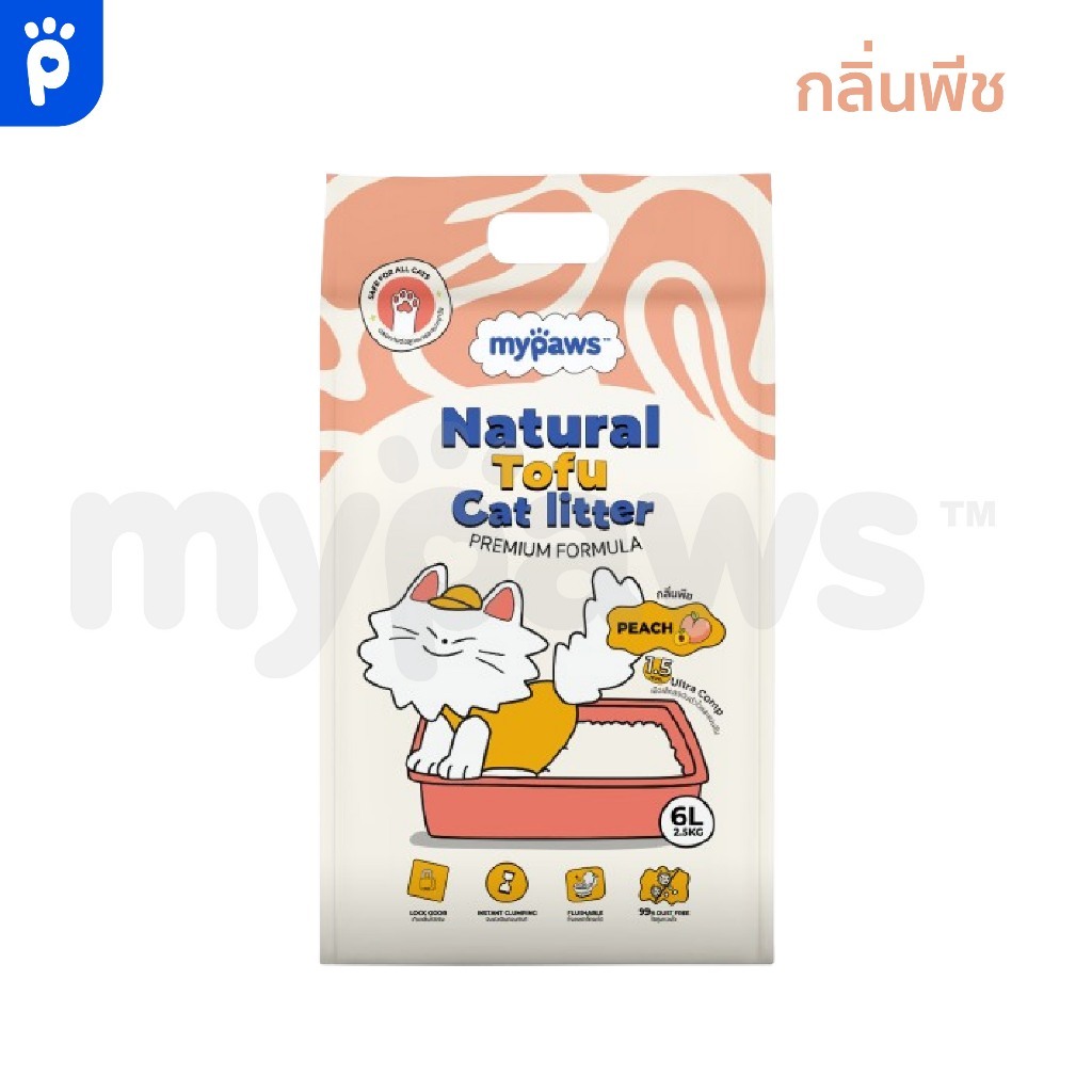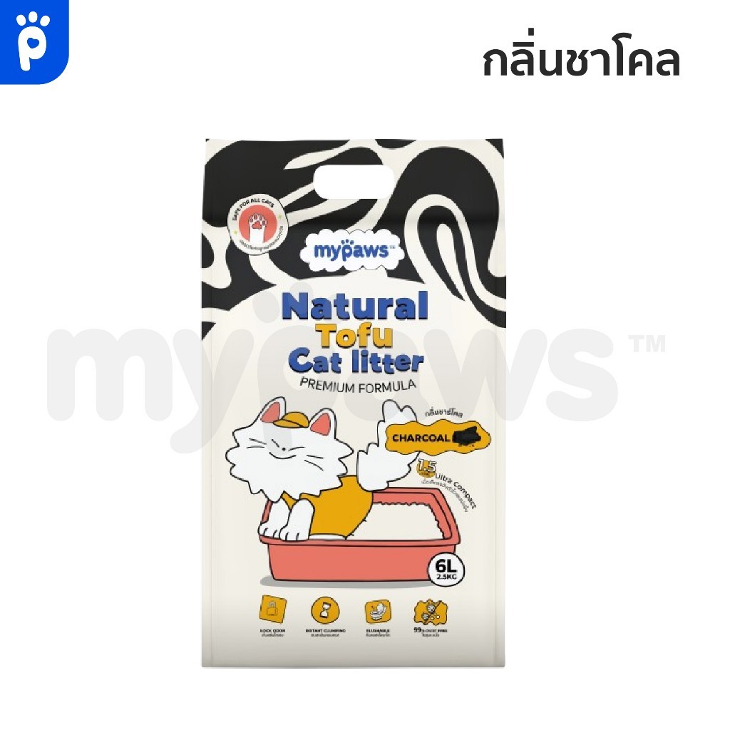 My Paws ทรายแมวเต้าหู้ Natural Tofu Cat Litter จากธรรมชาติ เกรดพรีเมียม ฝุ่นน้อย จับตัวไว ละลายน้ำดี ขนาด6ลิตร
