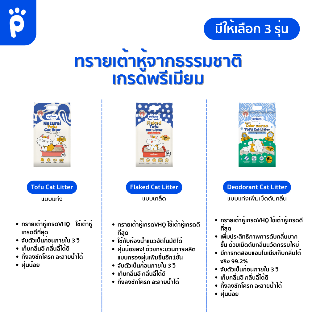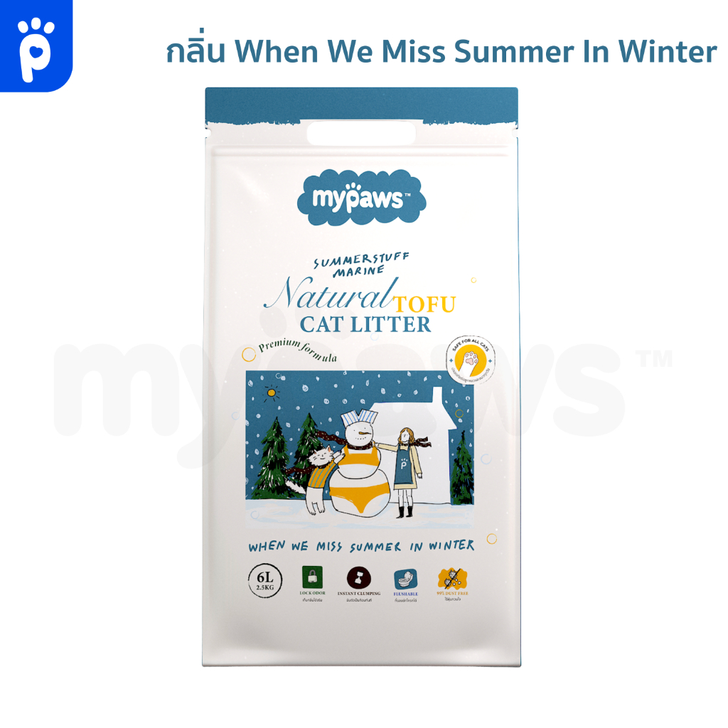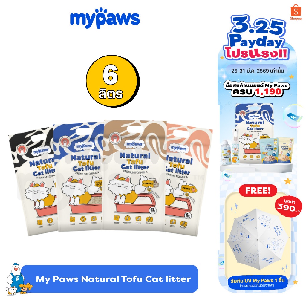 My Paws ทรายแมวเต้าหู้ Natural Tofu Cat Litter จากธรรมชาติ เกรดพรีเมียม ฝุ่นน้อย จับตัวไว ละลายน้ำดี ขนาด6ลิตร