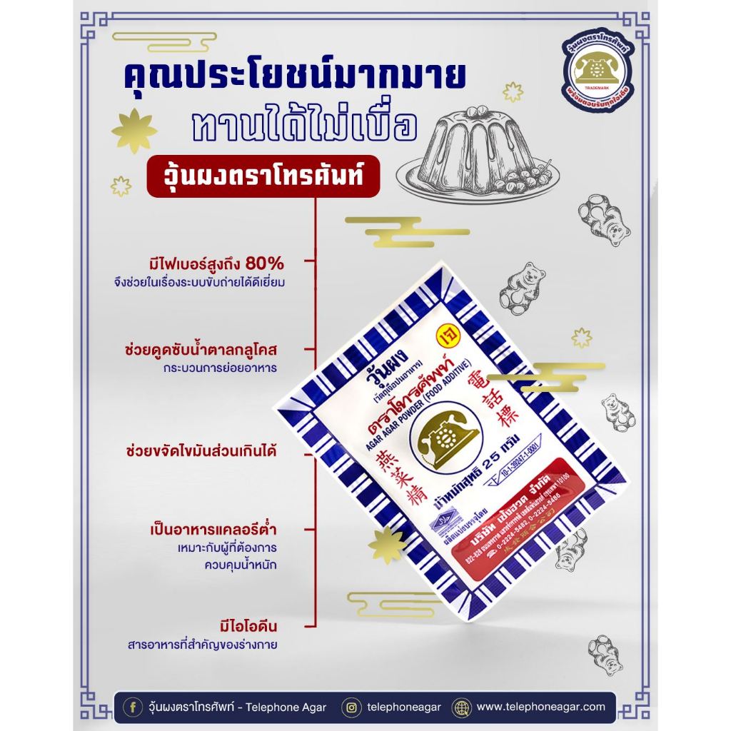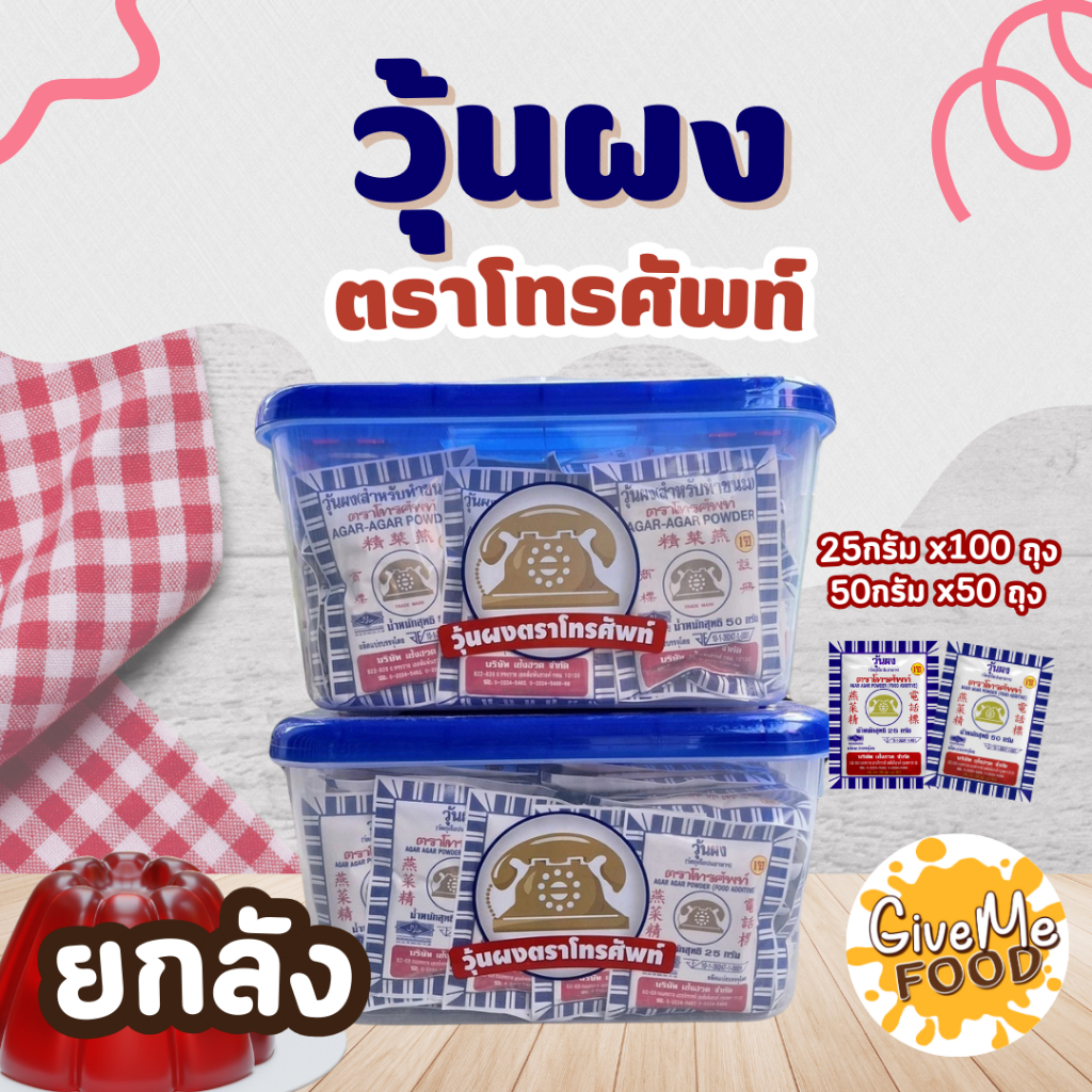 [ยกกล่อง] ผงวุ้นโทรศัพท์ 25/50 กรัม ผงวุ้นแท้ธรรมชาติ