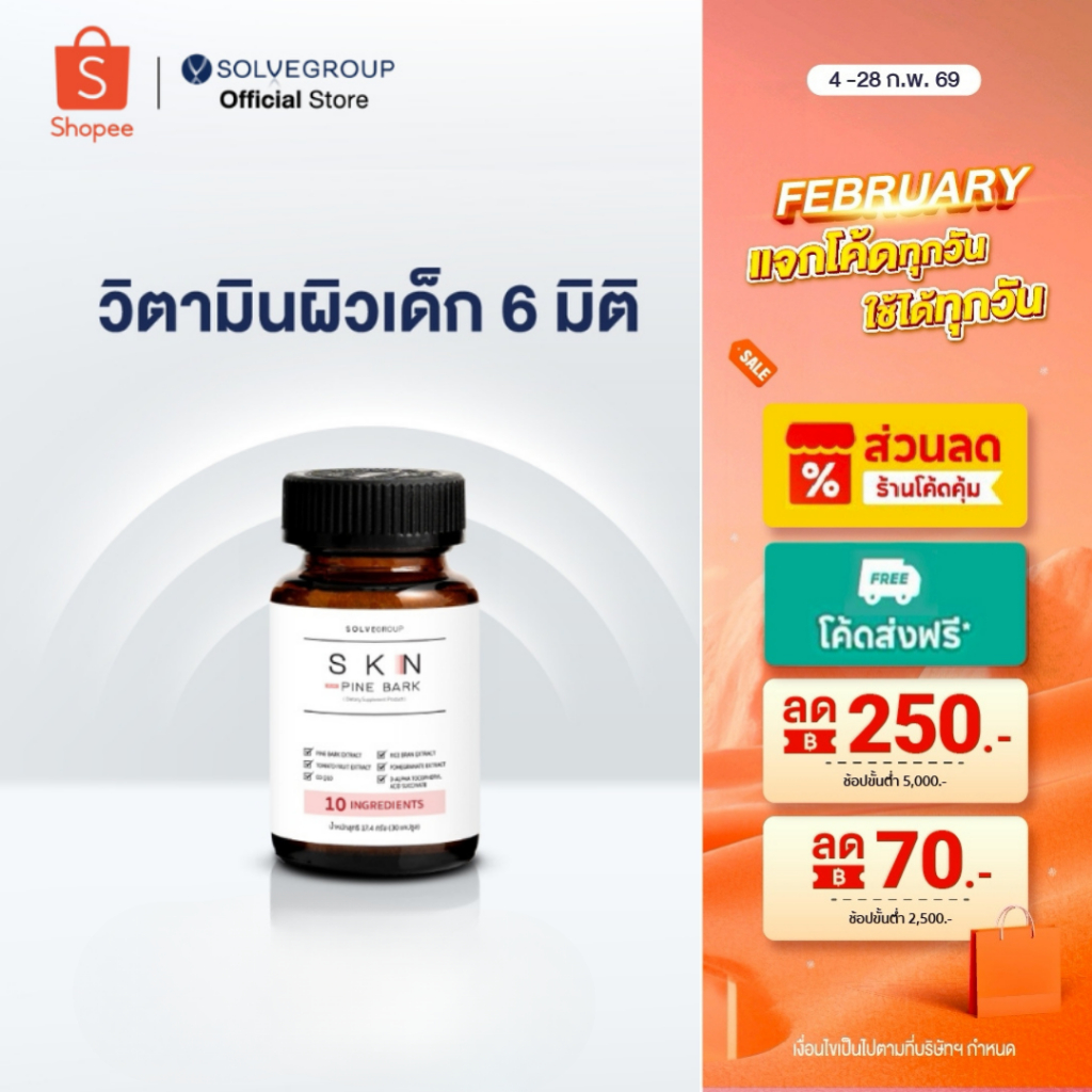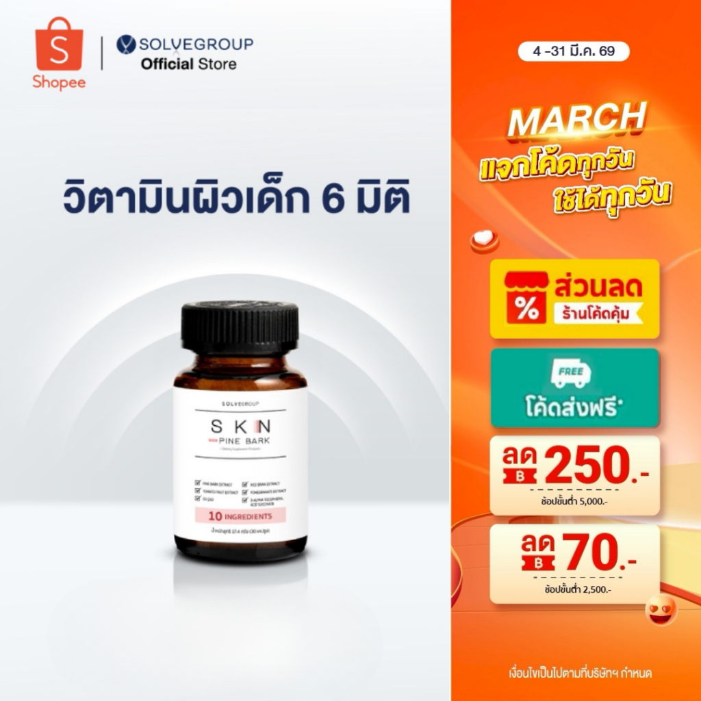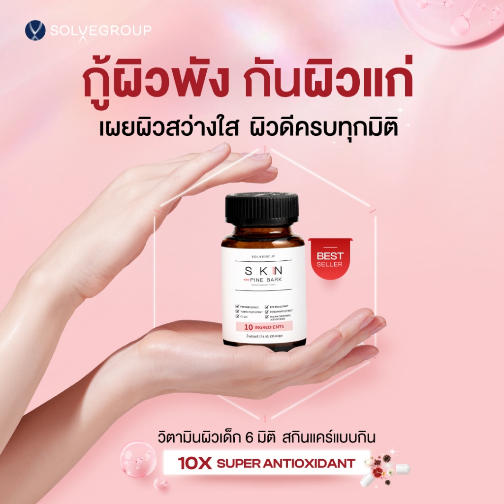 SKN Plus Pine Bark 10X Skin Booster วิตามินกู้ผิวพังกันผิวแก่ ขนาดกระปุกละ 30 แคปซูล