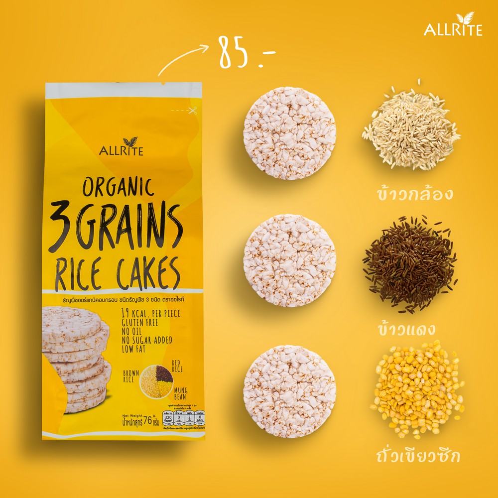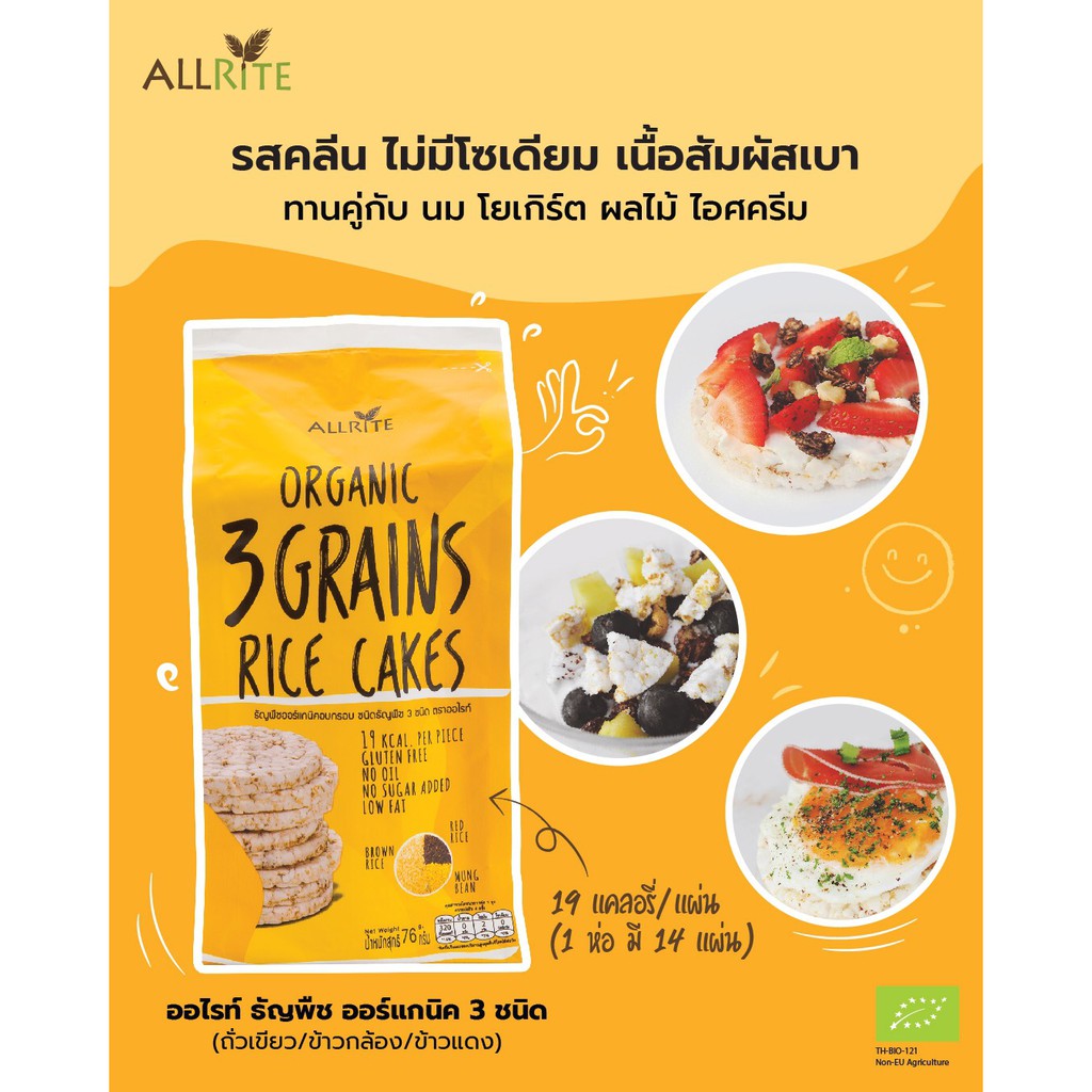 ALLRITE Organic 3 Grains ธัญพืชออร์แกนิคอบกรอบ ชนิดรวมธัญพืช 3ชนิด 80กรัม