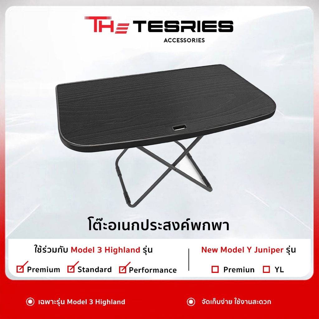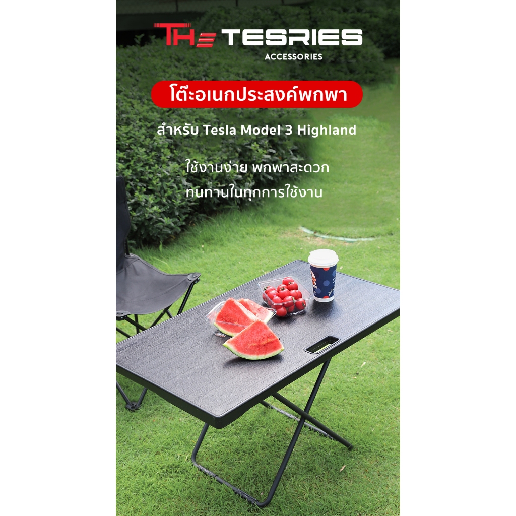 Tesla โต๊ะแคมป์ปิ้ง โต๊ะอเนกประสงค์พกพา Model Y(ปี19-24)/3 Highland/3 STD พับเก็บง่าย ใส่ท้ายรถได้
