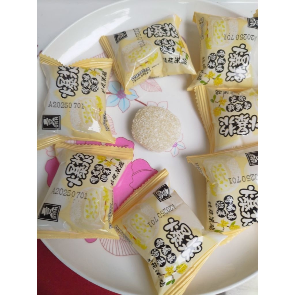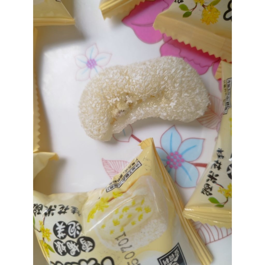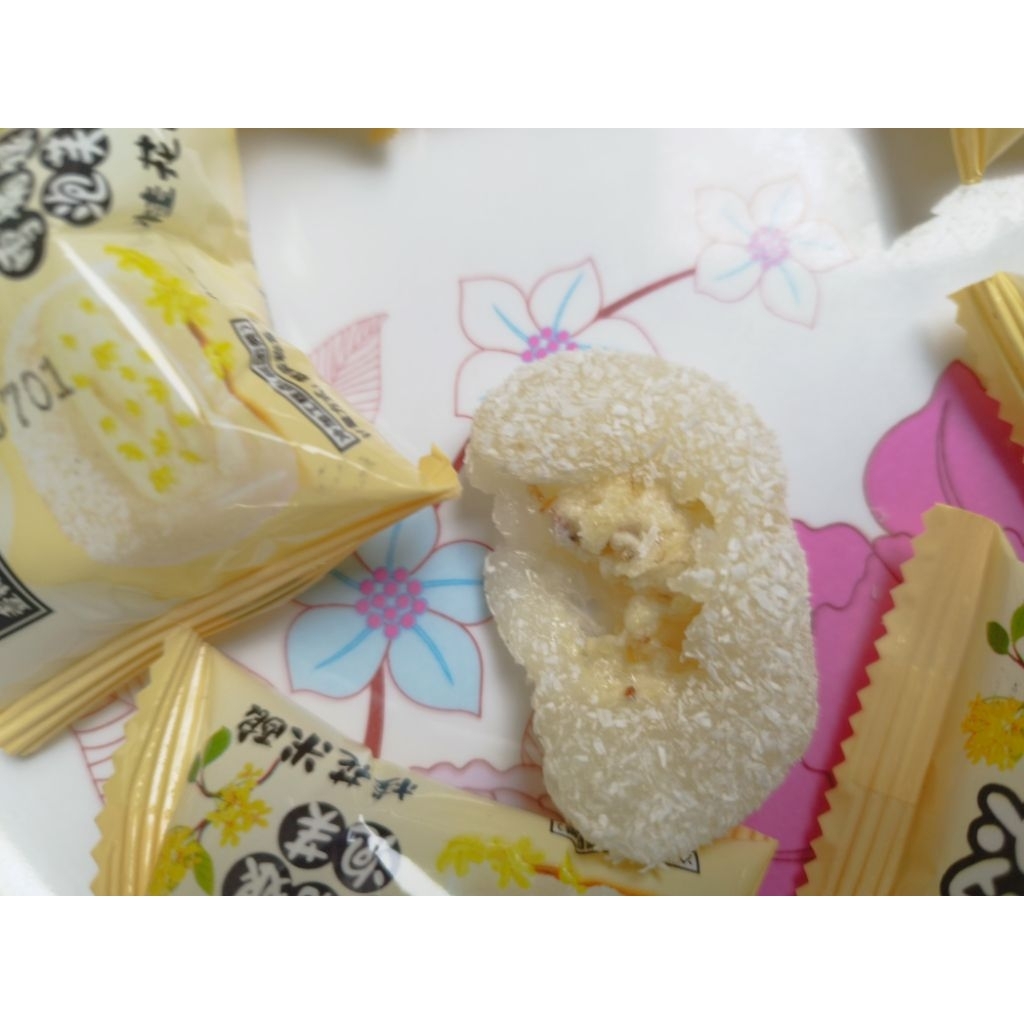ขนมกุ้ยฮวามี่เนียง(桂花米酿)/ขนมกุ้ยฮวาเค้กโมจิข้าวเหนียวไส้ข้าวหมากหอมหมื่นลี้ ขนาดพอดีคำ