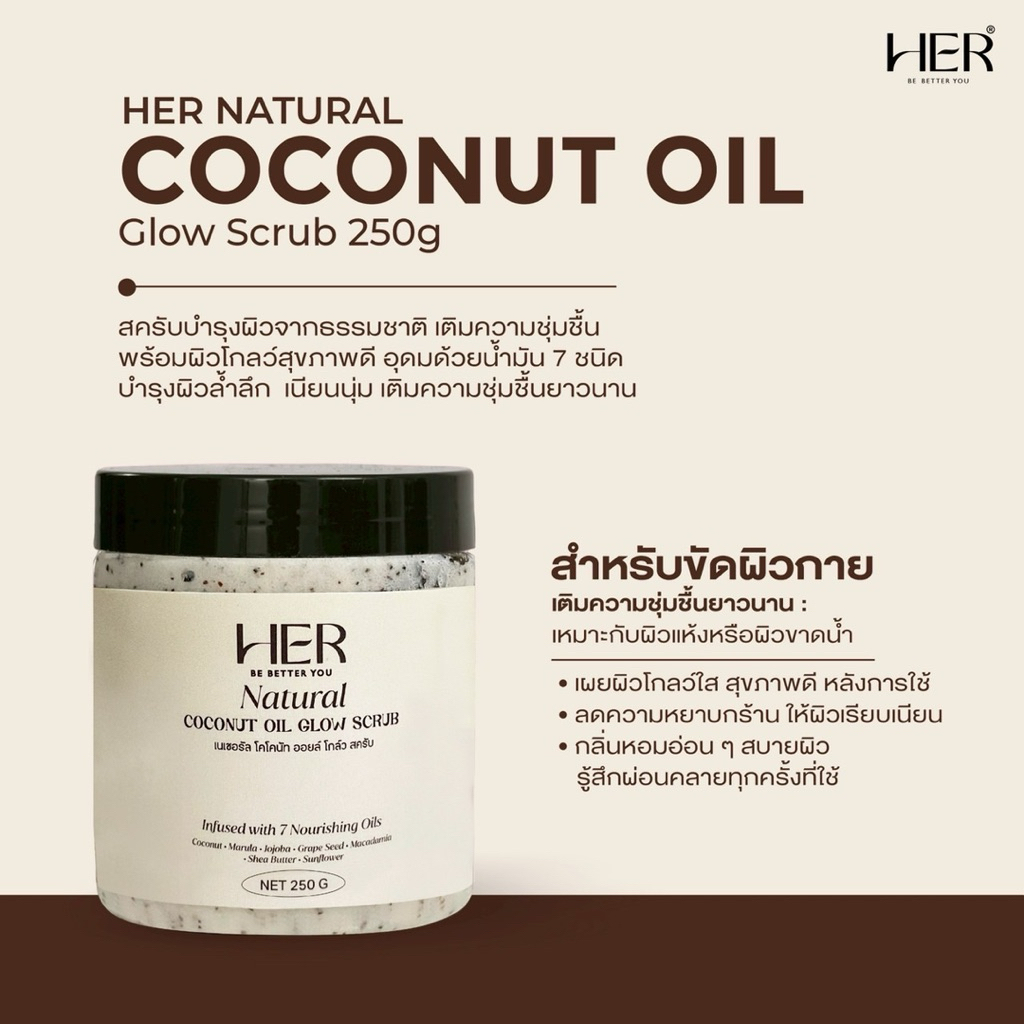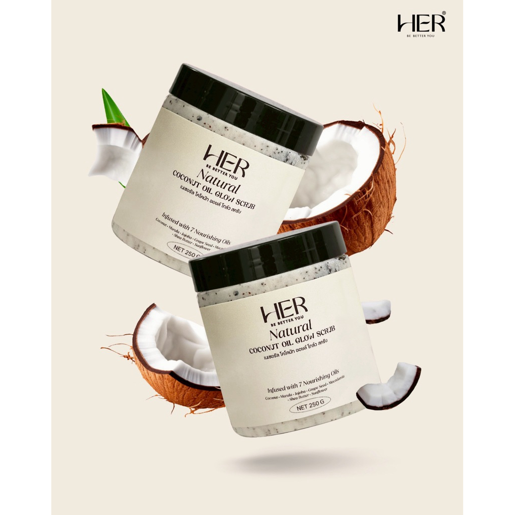 Her Natural Coconut Oil Glow Scrub สครับโกลว์น้ํามันมะพร้าวธรรมชาติ