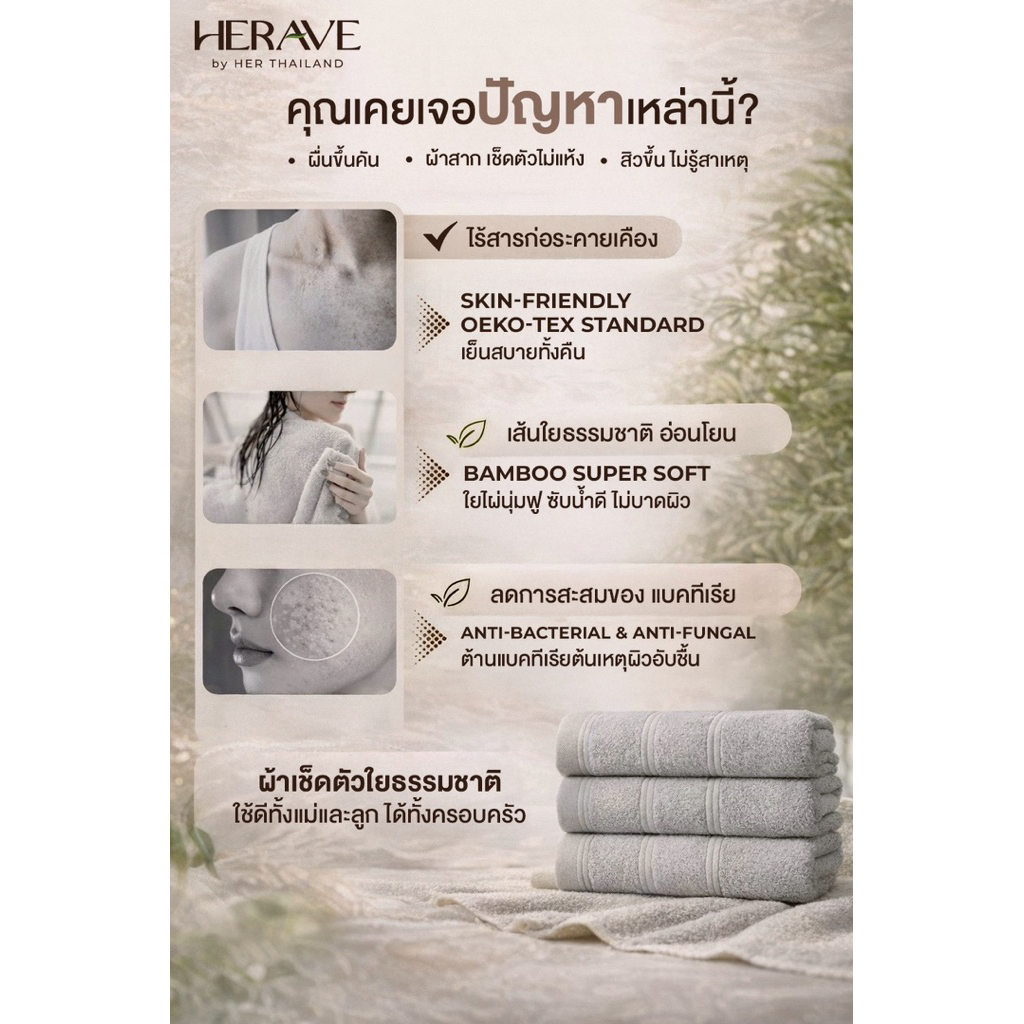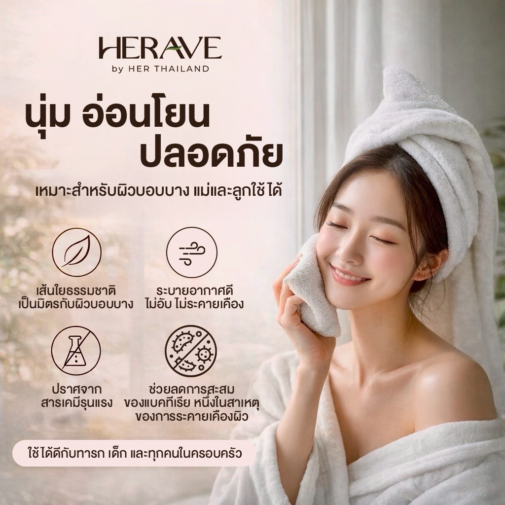 HERAVE ผ้าเช็ดหน้าใยไผ่ 100% (แพ็ค 5 ชิ้น) นุ่มมาก ไม่บาดผิว ซับน้ำดีเยี่ยม ผ้าเช็ดปากเด็ก 25x25cm