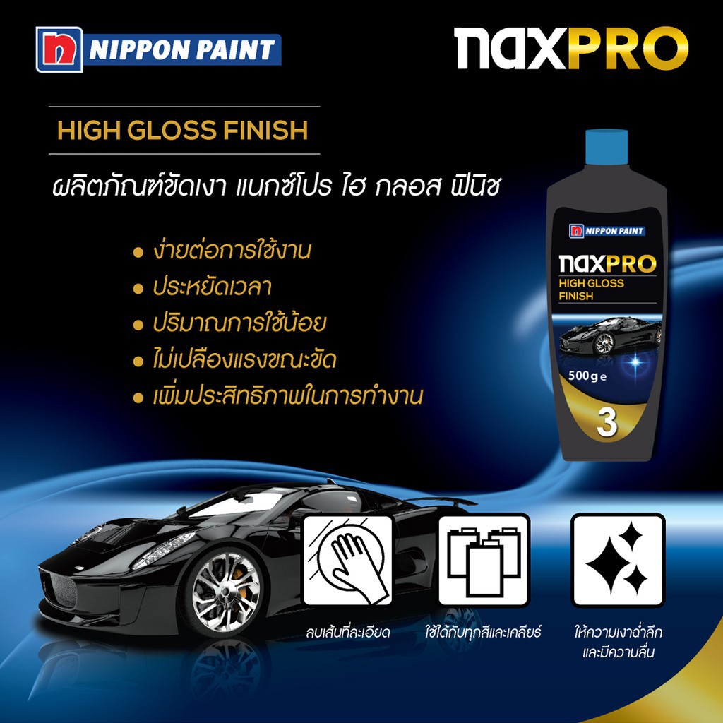 Naxpro แนกซ์โปร ยาขัดเงา อัลตรา ไฮ กลอส ฟินิชชิ่ง 500 ml. แถมฟรี แชมพู