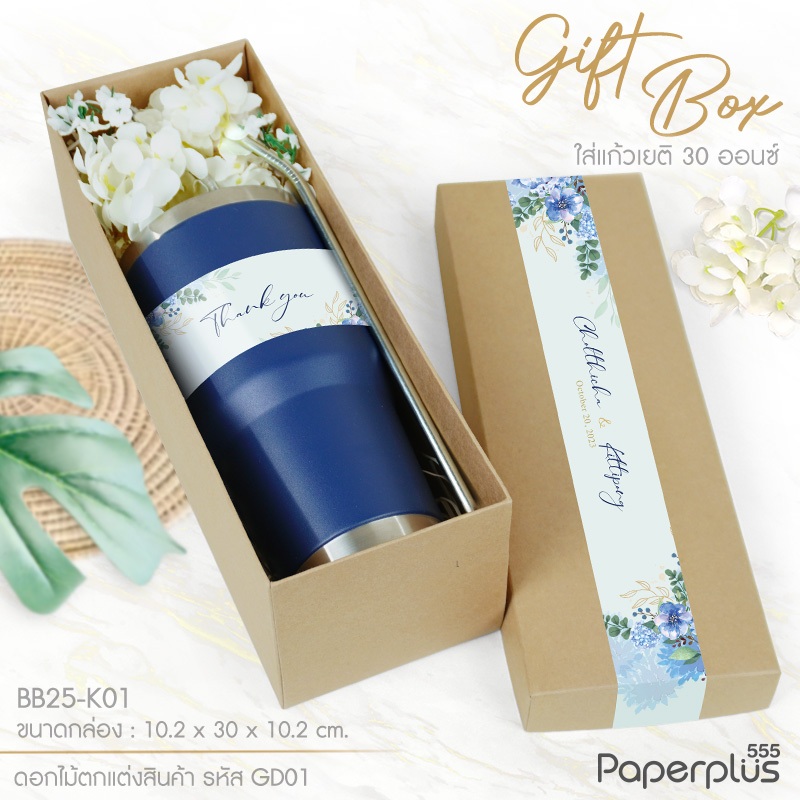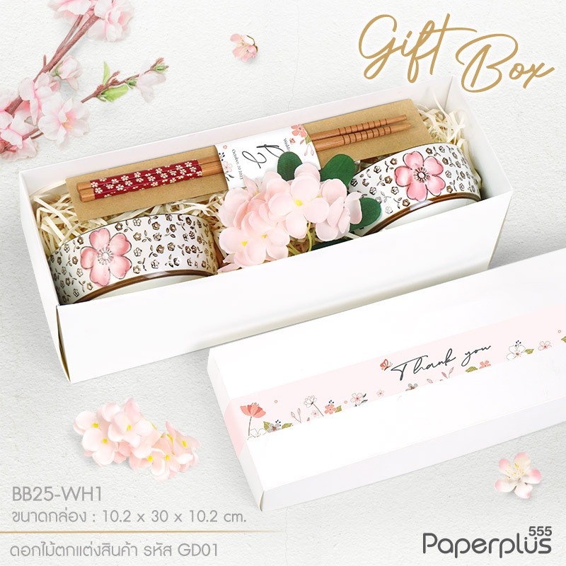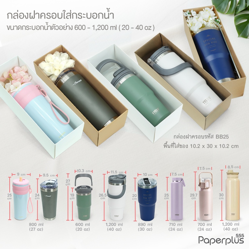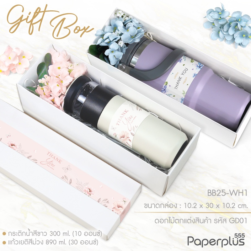 555paperplus กล่องฝาครอบทรงยาว(20ใบไม่พับ) BB25 คราฟท์/ขาว กล่องใส่กระบอกน้ำ ขวดไวน์ของขวัญ Giftset