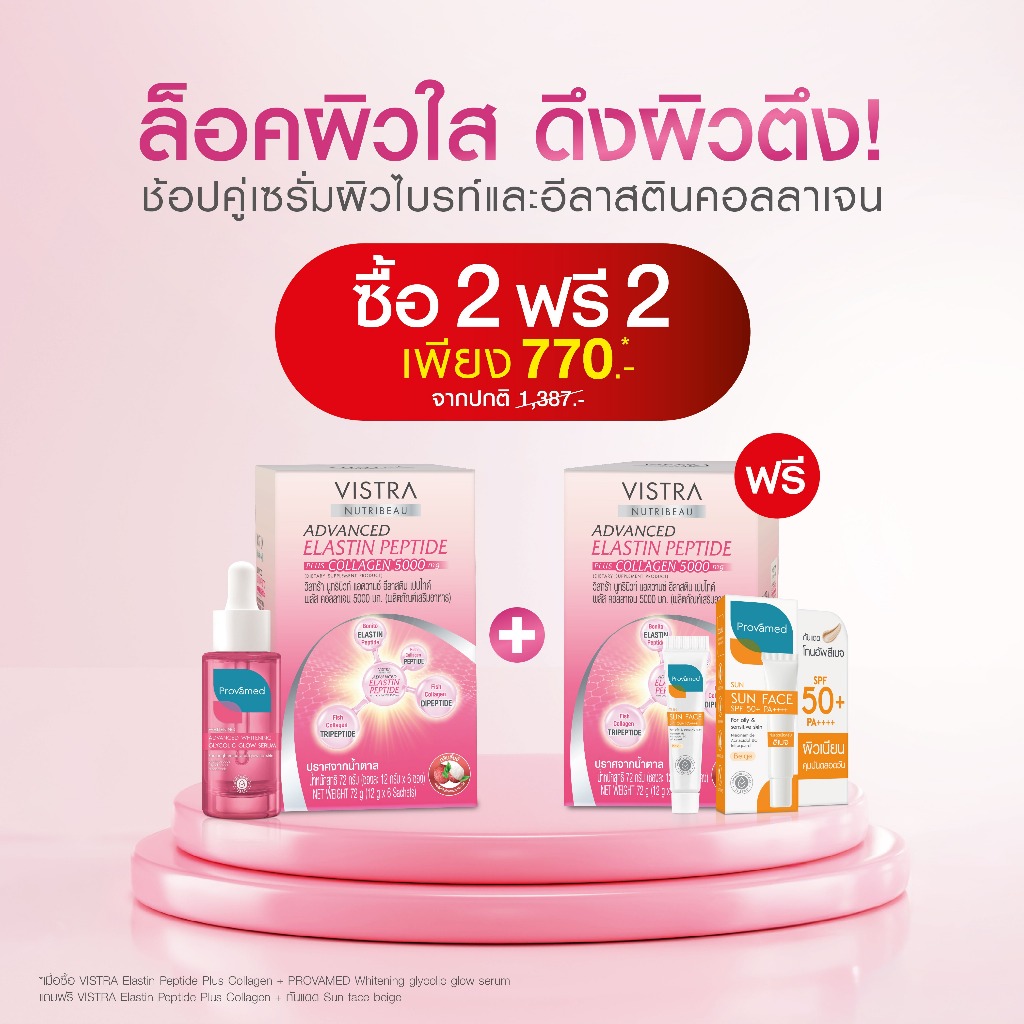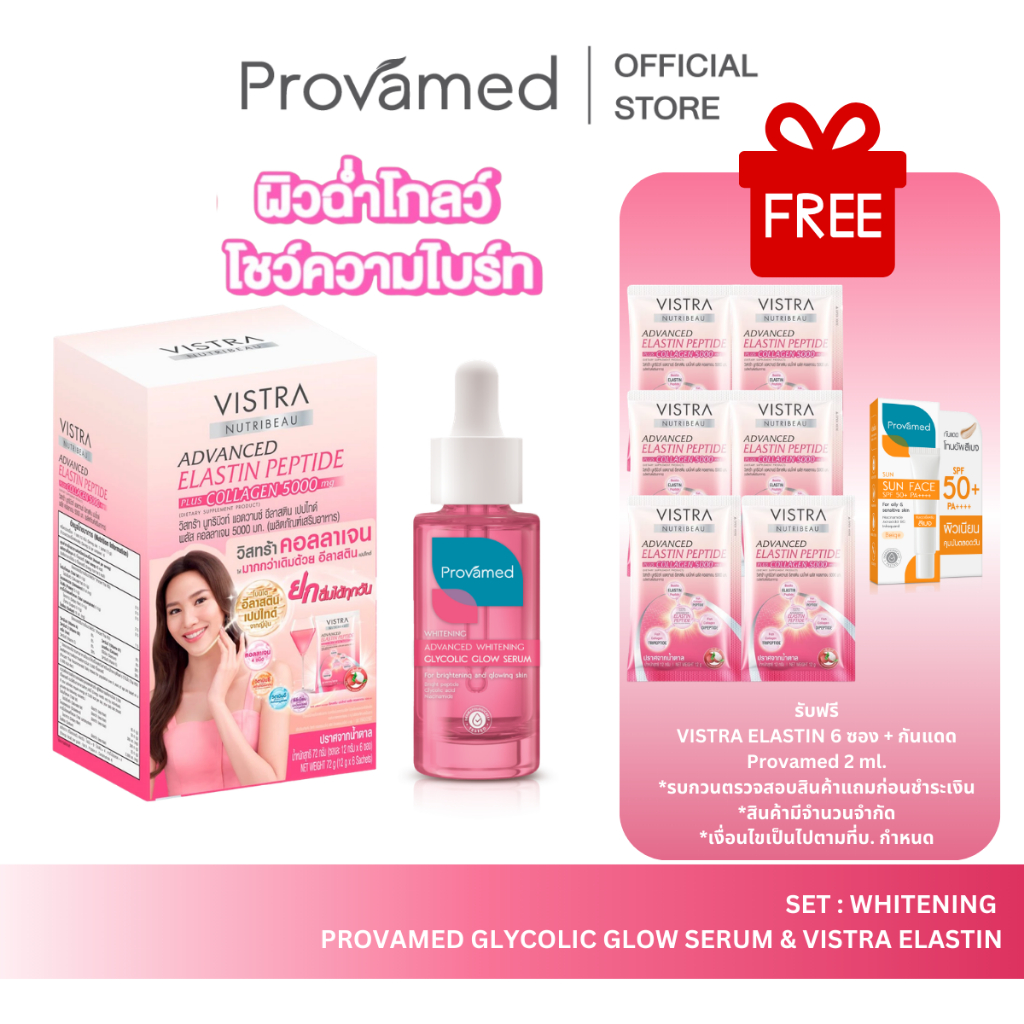 (รับของเเถมในเซต) Set ผิวฉ่ำใส Vstra Elastin Collagen 6 ซอง x Provamed Glycolic Glow Serum 30ml.
