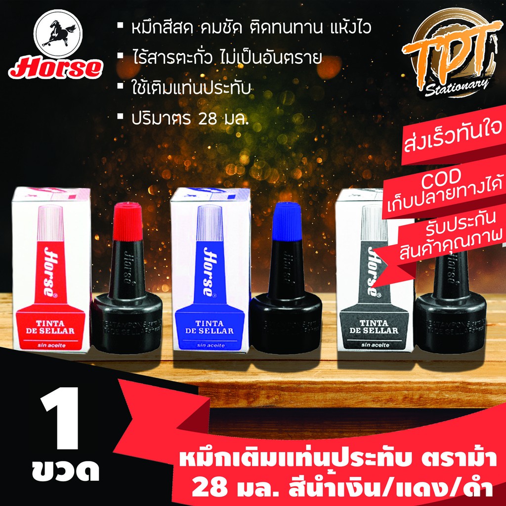 [1ขวด] หมึกเติมแท่นประทับ ตราม้า Horse