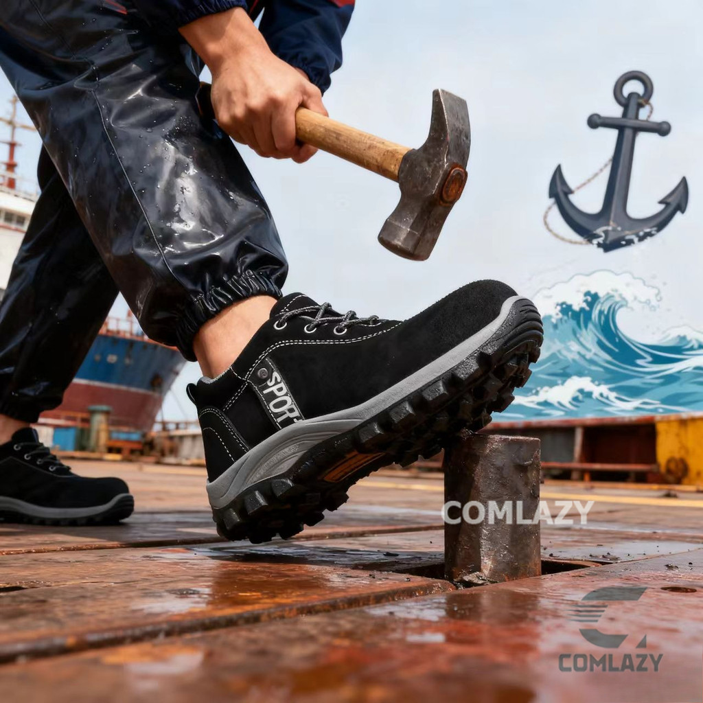 🔥พร้อมส่ง🔥รองเท้าเซฟตี้ พื้นเหล็กแผ่น รองเท้า safety กันกระแทกกันแทงรองเท้าชาย น้ำหนักเบาสวมใส่สบาย