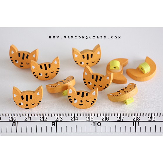 กระดุมไม้ กระดุมตกแต่ง Handmade DIY พิมพ์ลาย รูปแมวสีส้ม แป้นเย็บด้านหลัง ขนาด 20 x 15 มม. แพคละ 10 ชิ้น (รหัส bao0021)