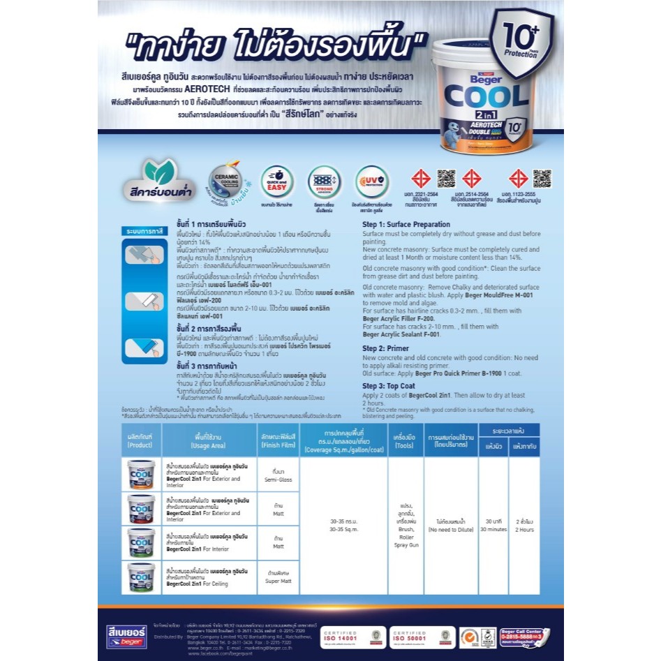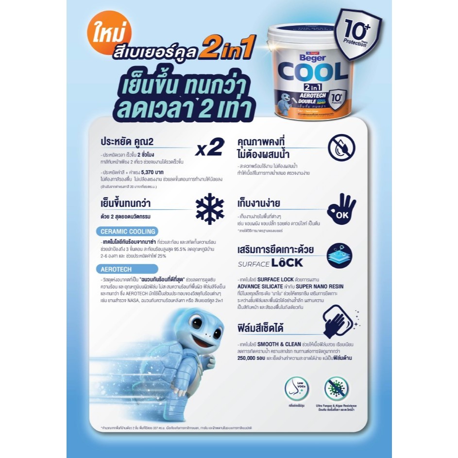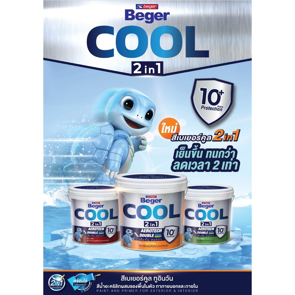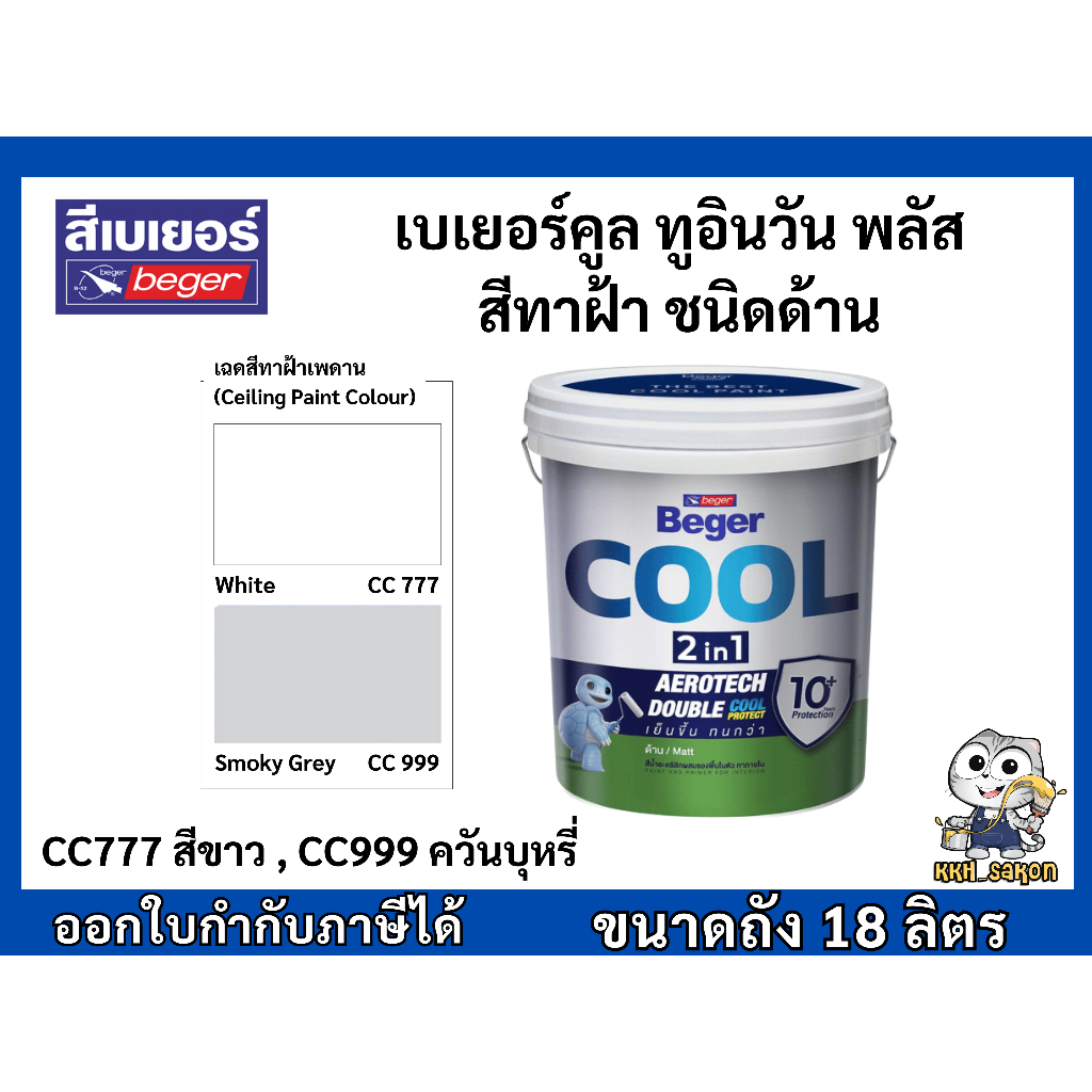 สีทาฝ้าเพดาน เบเยอร์คูล ทูอินวัน สีน้ำอะคริลิกผสมรองพื้นในตัว ขนาดถัง 18 ลิตร BegerCool 2in1 Ceiling
