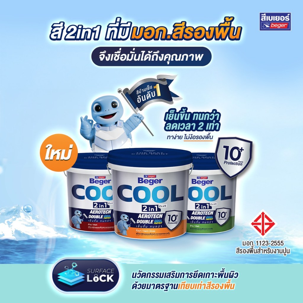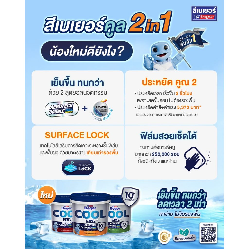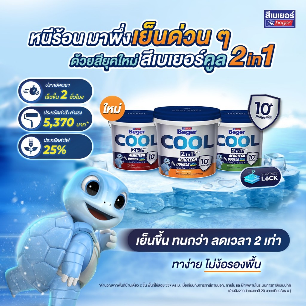 สีทาฝ้าเพดาน เบเยอร์คูล ทูอินวัน สีน้ำอะคริลิกผสมรองพื้นในตัว ขนาดถัง 18 ลิตร BegerCool 2in1 Ceiling