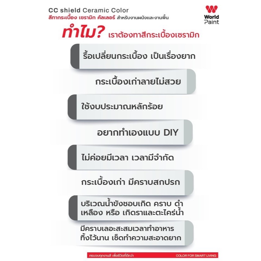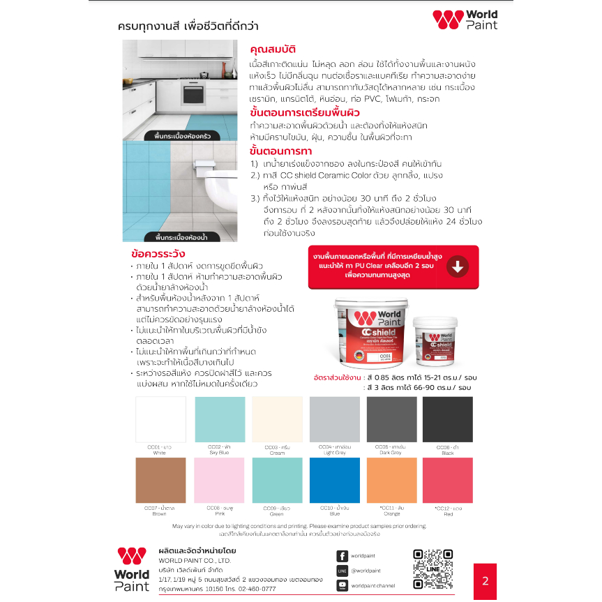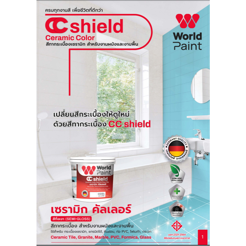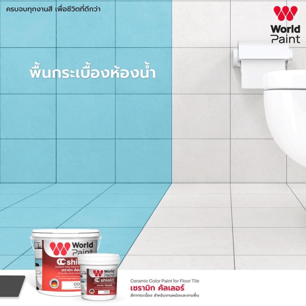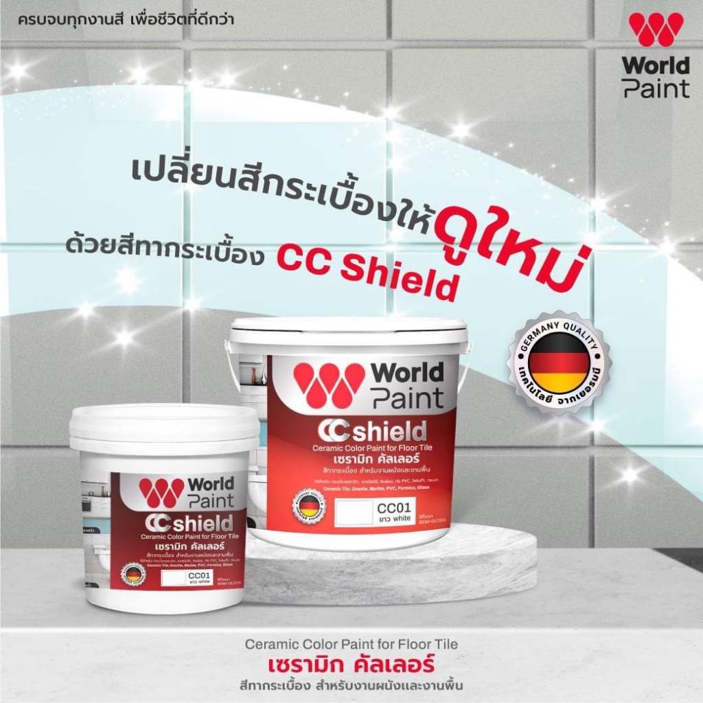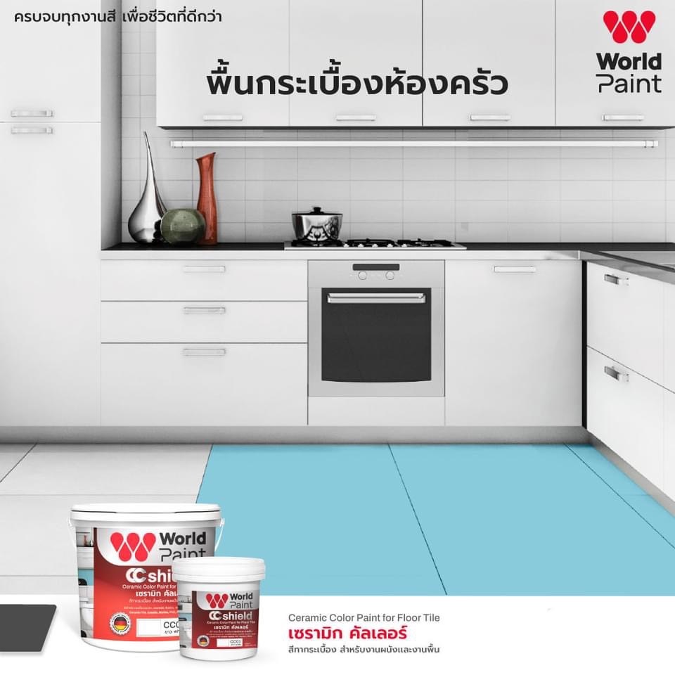 สีทากระเบื้อง ทาพื้นกระเบื้อง เซรามิก คัลเลอร์ Worldpaint CC Shield งานพื้น ผนัง ขนาดแกลลอน 3 ลิตร