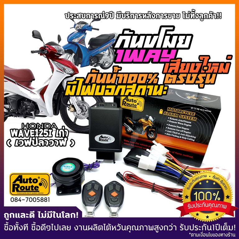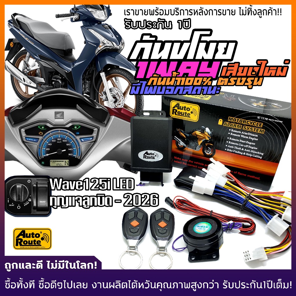 กันขโมยมอเตอร์ไซค์ Wave 125i LED ( เวฟ 125i ) ปลั้กตรงรุ่น ไม่ตัดสายไฟไม่ยุ่งเกี่ยวระบบไฟและระบบหัวฉีด ECUของรถ รถไม่พัง