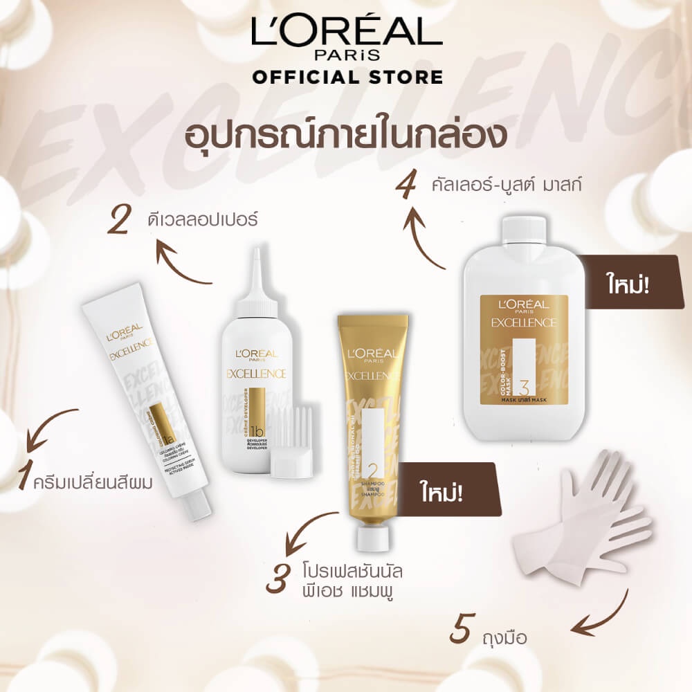 L'OREAL Excellence Fashion ลอรีอัล ปารีส เอกซ์เซลเล้นซ์ แฟชั่น ครีมเปลี่ยนสีผม สวยโดดเด่นเป็นประกาย ผมไม่เสีย 260 กรัม