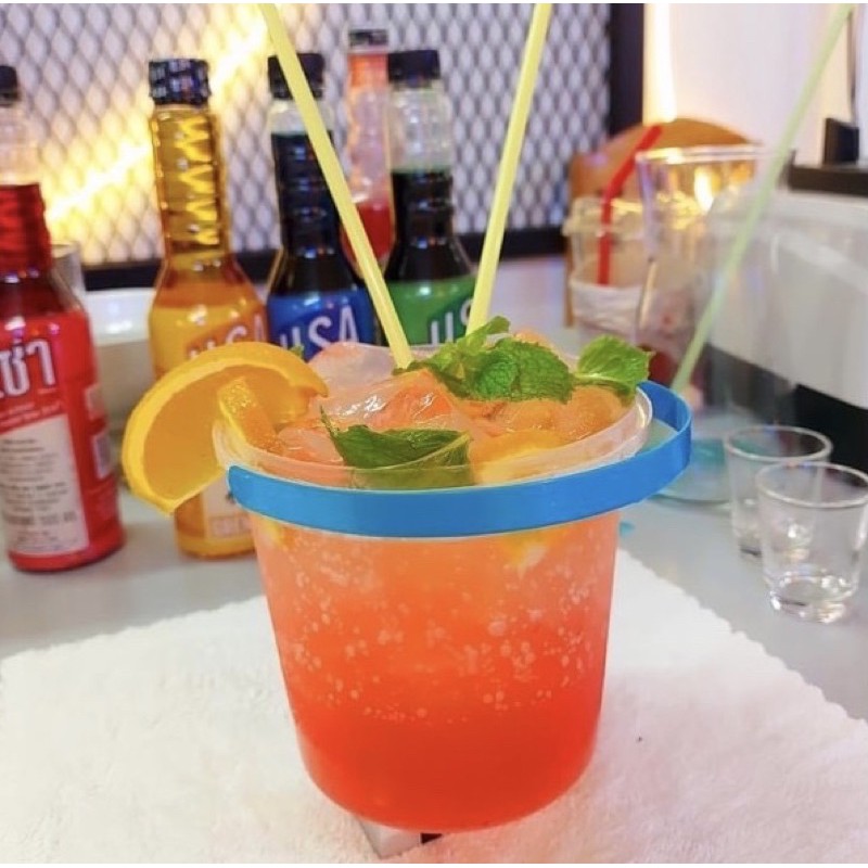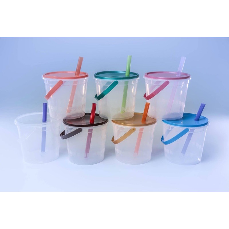 ถังน้ำแข็ง ขนาด 1 ลิตร ถังใส่เหล้าปั่น มีหูหิ้ว ฝาสีหูสี (20ใบ) สุ่มคละสีไปให้2สี