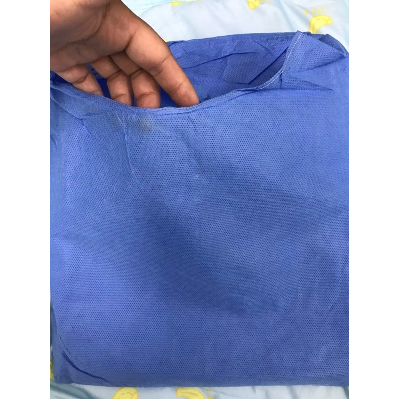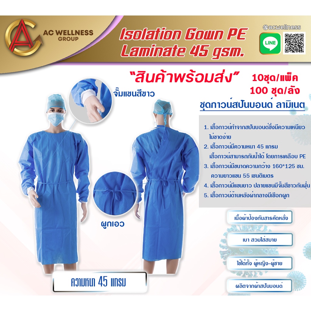 ชุดกาวน์ใยสังเคราะห์ Isolation Gown PE Laminate 45 gsm. เสื้อกาวน์สปันบอนด์ ชุดกาวน์ใช้เเล้วทิ้ง