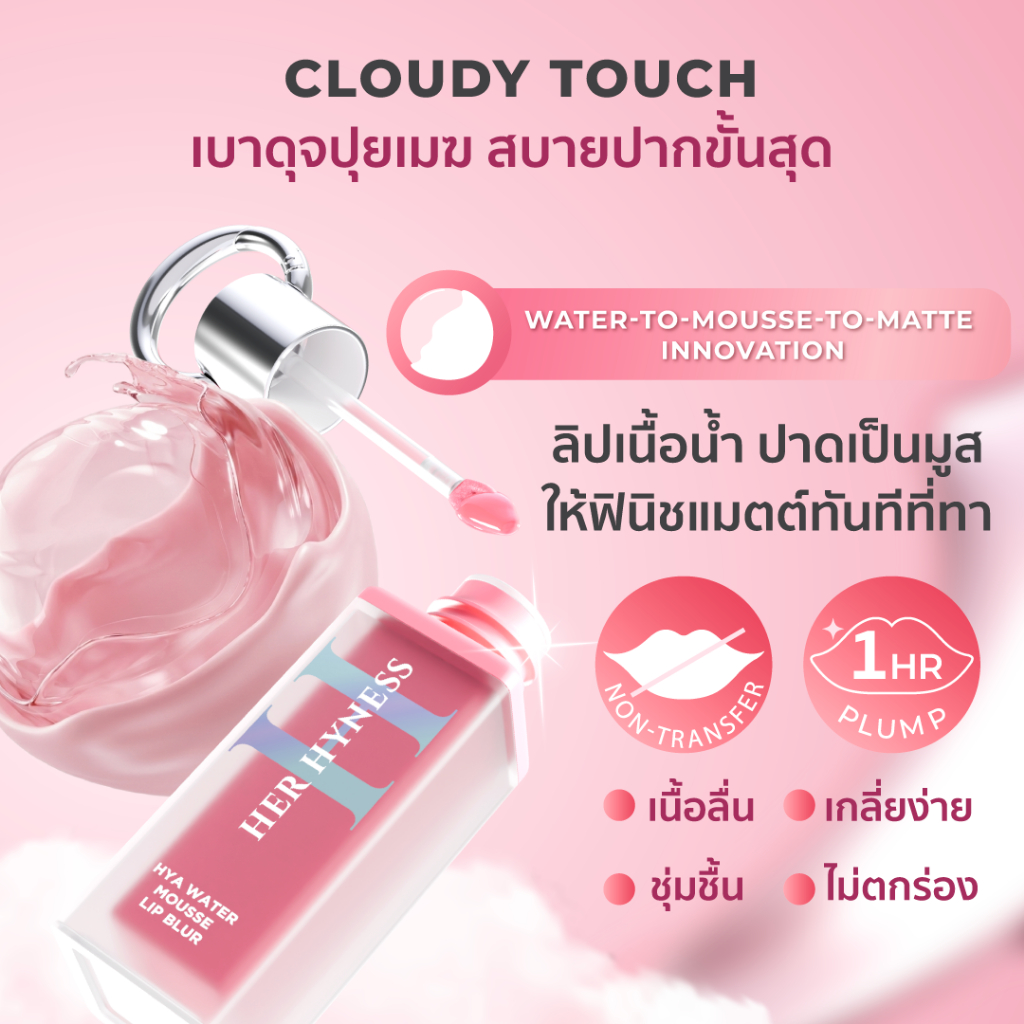 HER HYNESS HYA WATER MOUSSE LIP BLUR 3ML เฮอ ไฮเนส ไฮยา วอเตอร์ มูส ลิป เบลอ 3มล