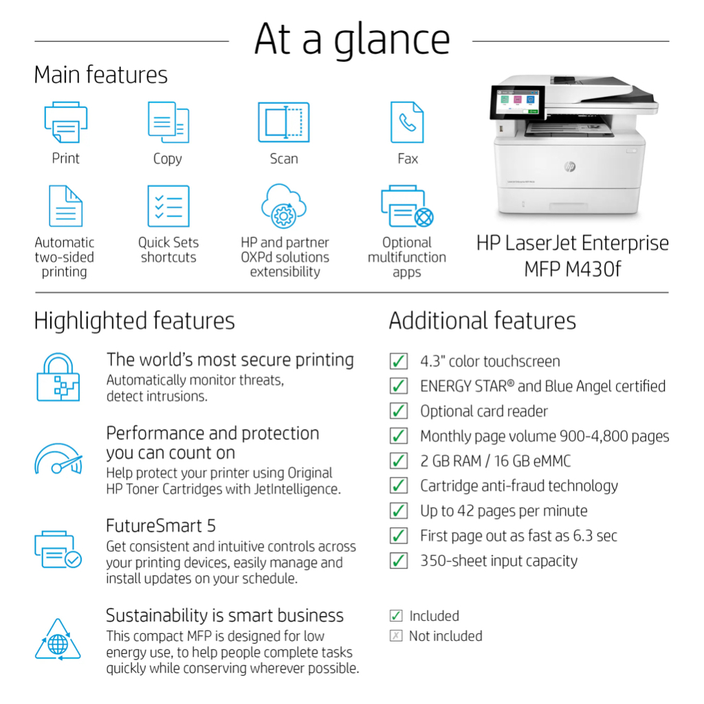 HP LaserJet Enterprise MFP M430f เครื่องปริ้นเตอร์มัลติฟังก์ชั่น [[มาแทน Hp MFP M428fdn]] รับประกัน 3 ปี