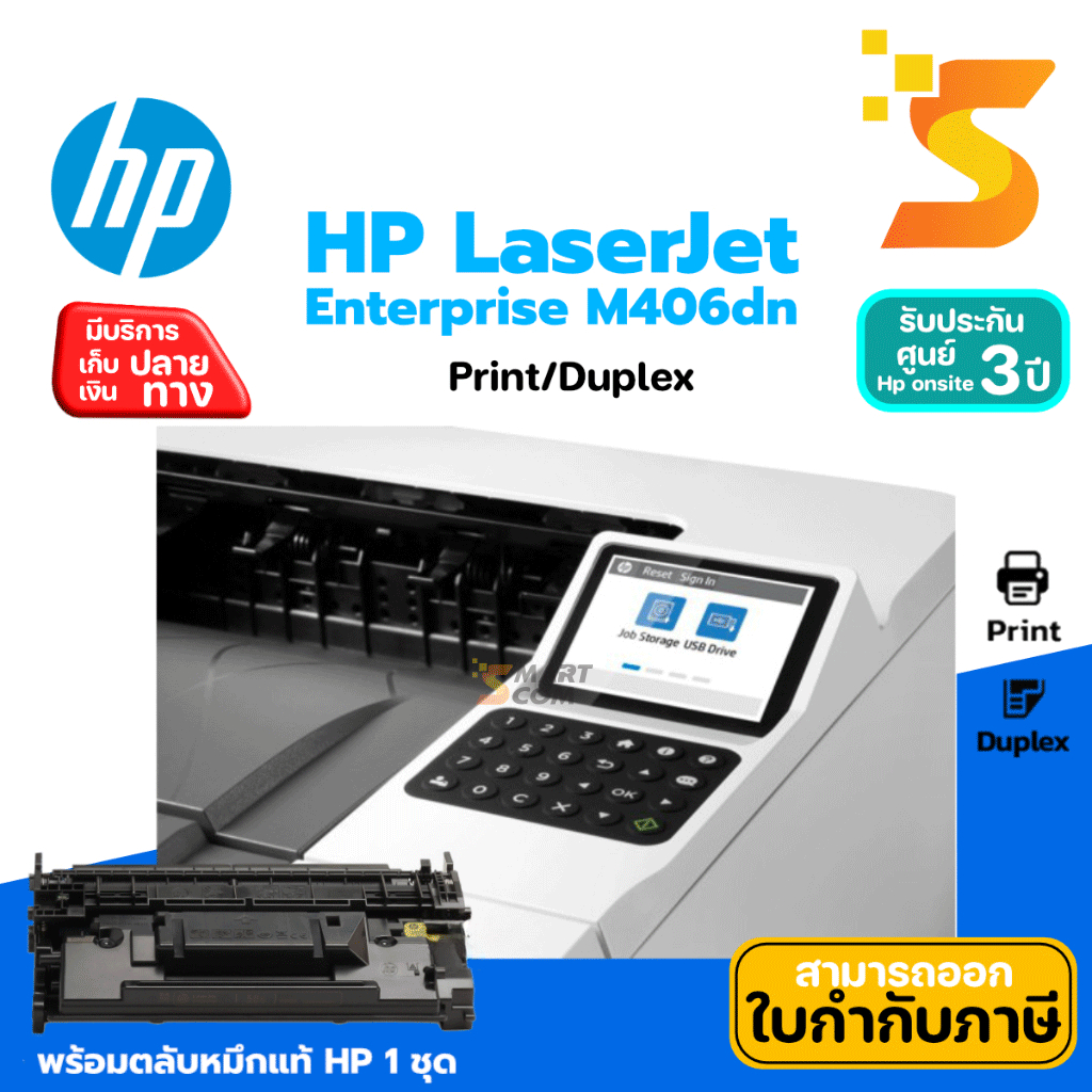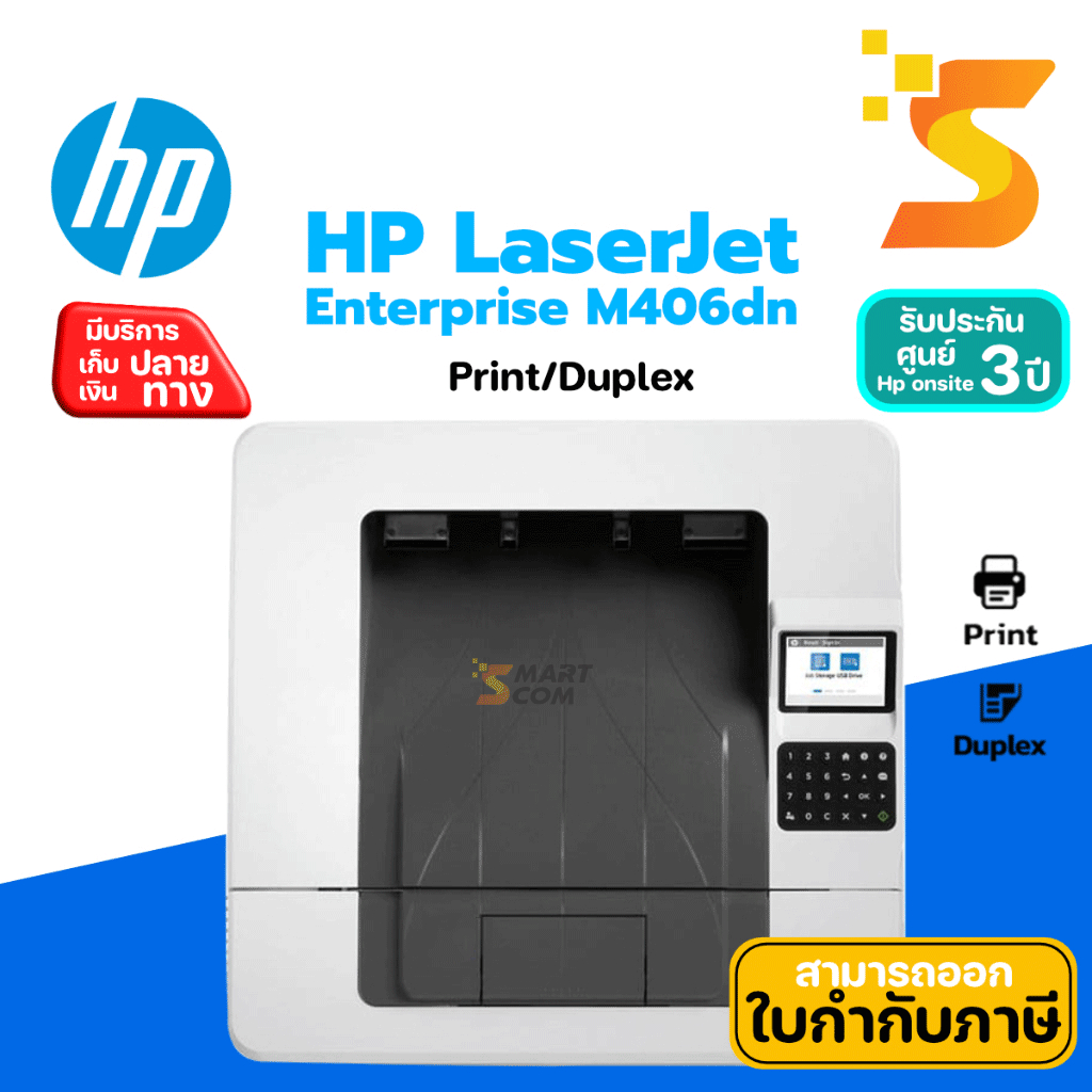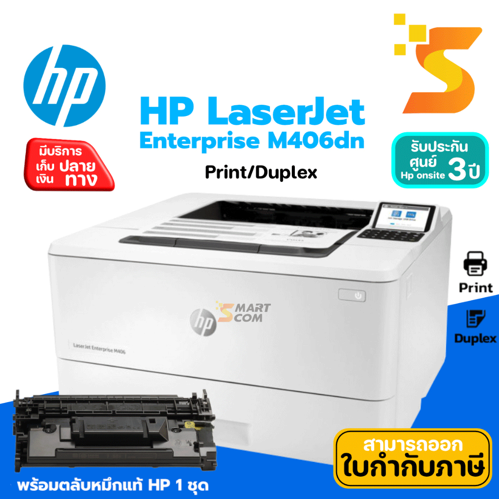 พร้อมส่ง!!! Printer HP LaserJet Enterprise M406dn ปริ้นเตอร์เลเซอร์ ขาว-ดำ แทน HP Pro M404dn การรับประกัน: 3 ปี (On Site