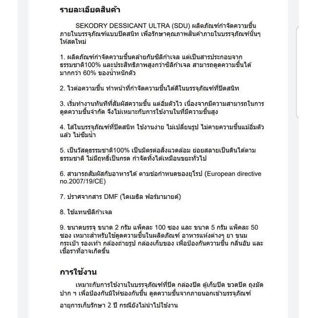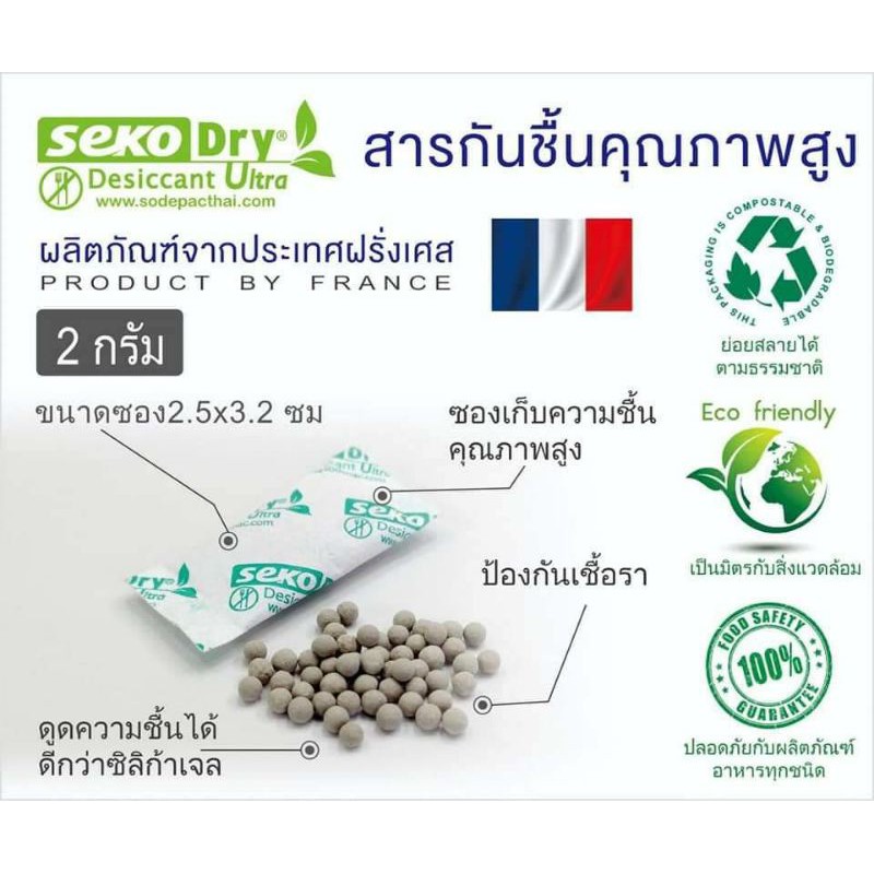 ซองกันชื้น 2 กรัม (100 ชิ้น) / 5 กรัม (50 ชิ้น)Food grade สัมผัสอาหารได้โดยตรง ปลอดภัย ย่อยสลายได้ง่าย SEKO