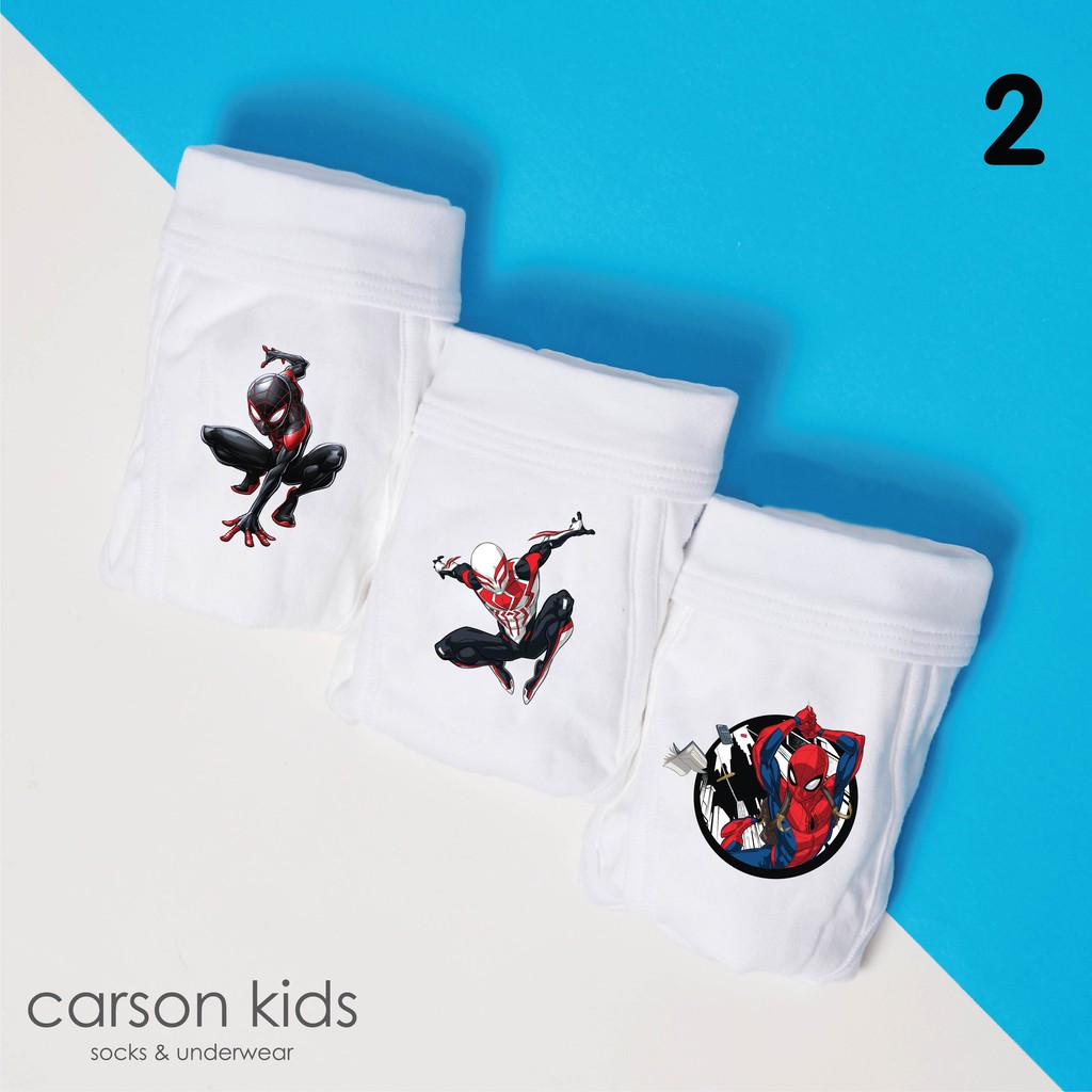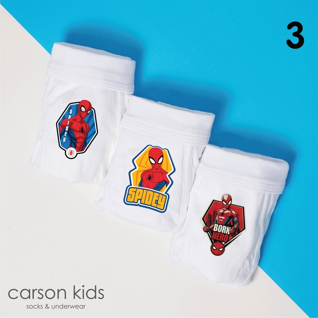 กางเกงในเด็กผู้ชาย Carsonkids เอวผ้า ลาย Spiderman เนื้อผ้า Cotton supersoft แพ็ค 3 ตัว (KBBRSP16008WH)