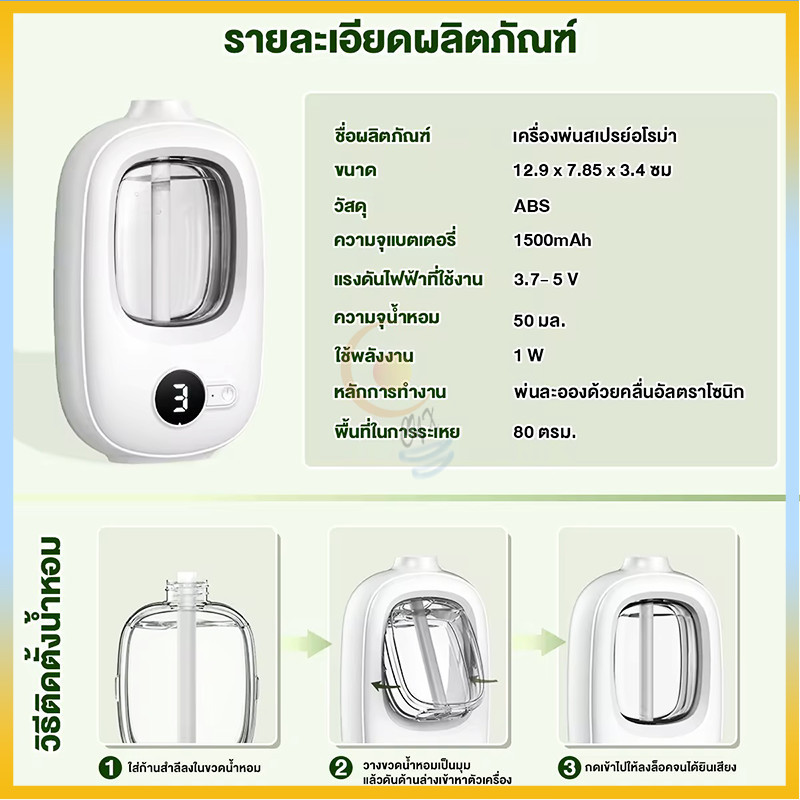 สเปรย์น้ำหอมปรับอากาศ เครื่องพ่น น้ำหอมอัตโนมัติ สเปรย์ระดับนาโน กระจายกลิ่นหอมยาวนาน ไร้สาย แขวนผนัง มีหลายกลิ่นให้เลือก