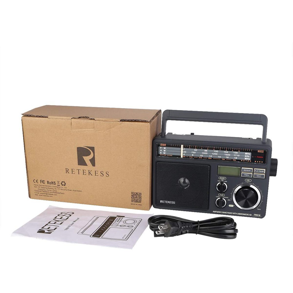 Retekess TR618 เครื่องรับสัญญาณวิทยุ FM AM SW แบบพกพา พร้อมเครื่องเล่น MP3 ดิจิทัล เสียงดัง ลําโพงขนาดใหญ่