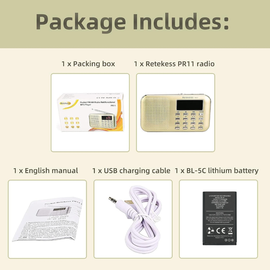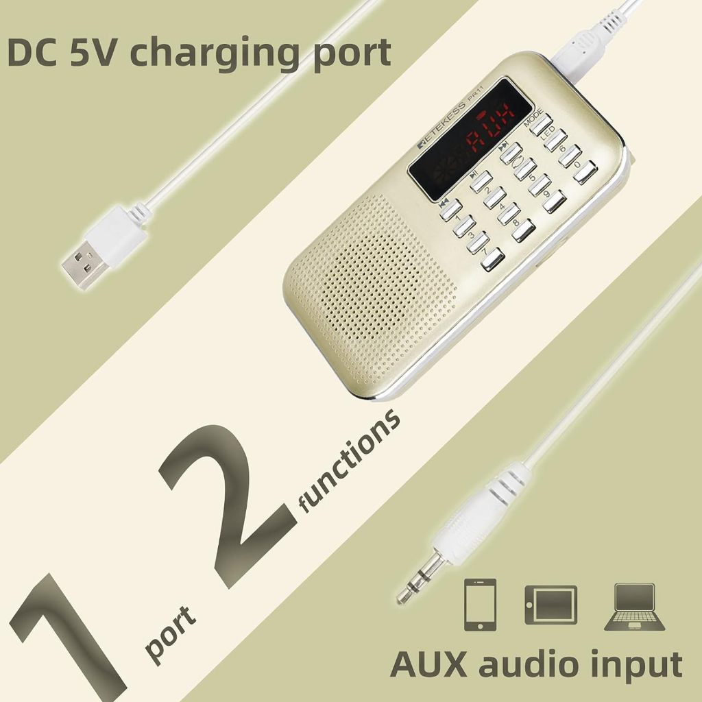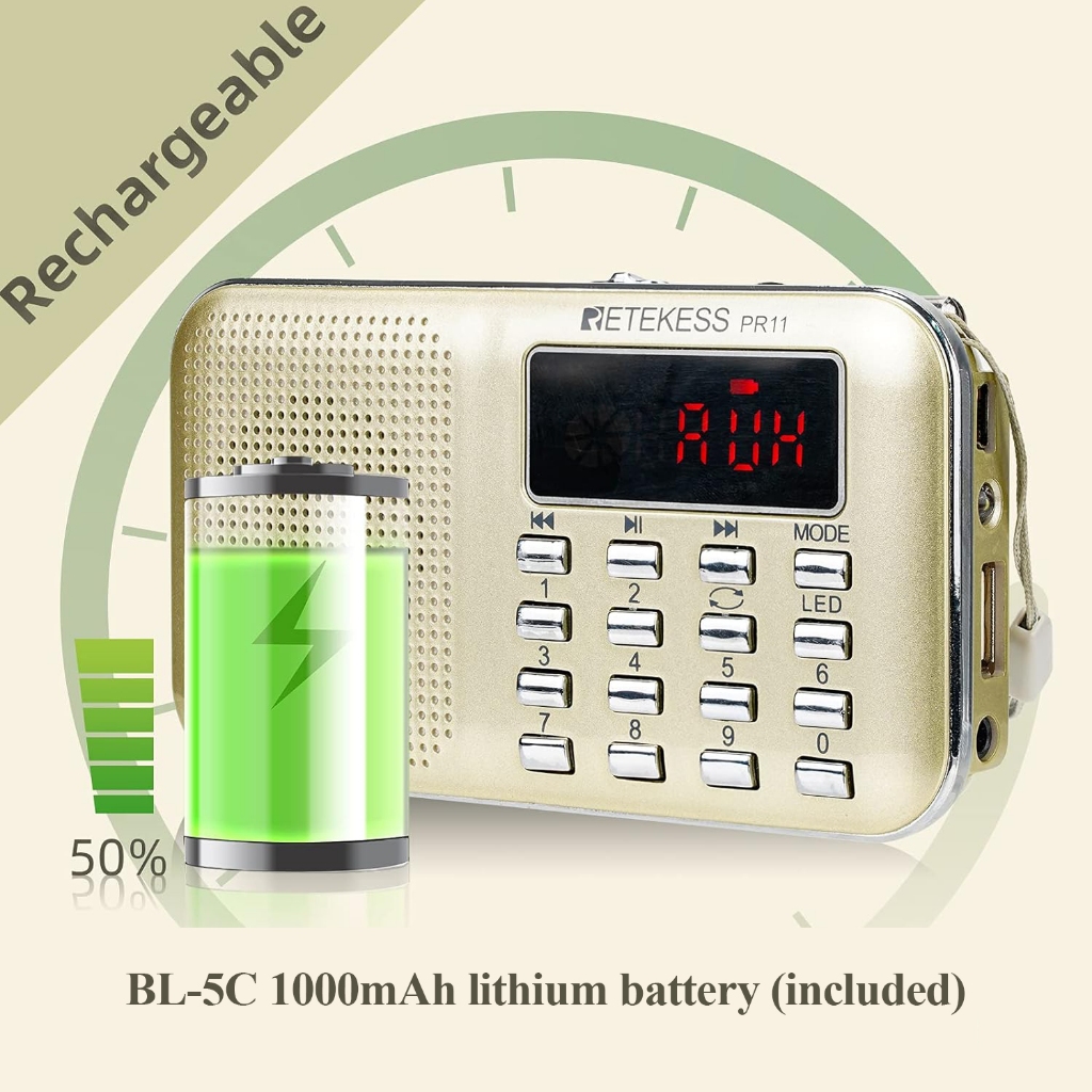 Retekess PR11 เครื่องเล่น MP3 วิทยุ FM AM ดิจิทัล แบบพกพา สีแดง และสีทอง