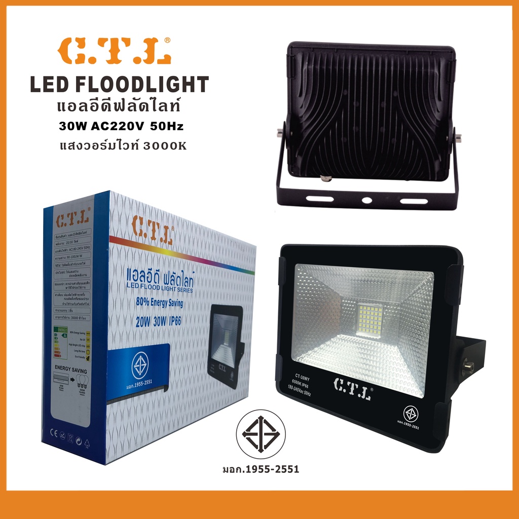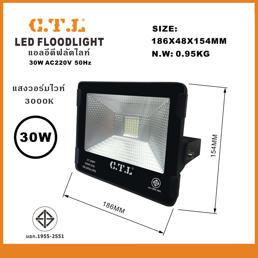 สปอร์ตไลท์ ฟลัดไลท์ส่องสนามLED 10W 30W 50W 220V แสงวอร์ม แสงขาวรุ่น WY IP66 ผ่านมาตรฐาน มอก พร้อมส่ง