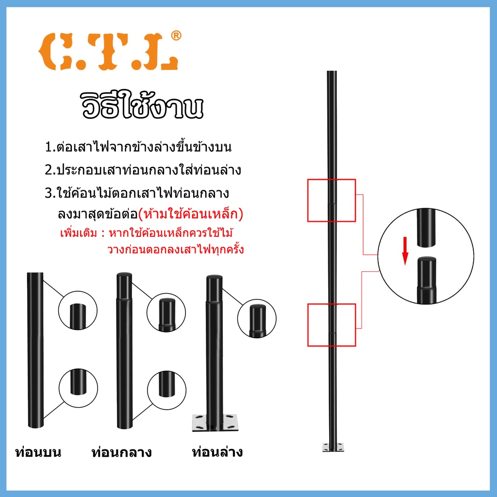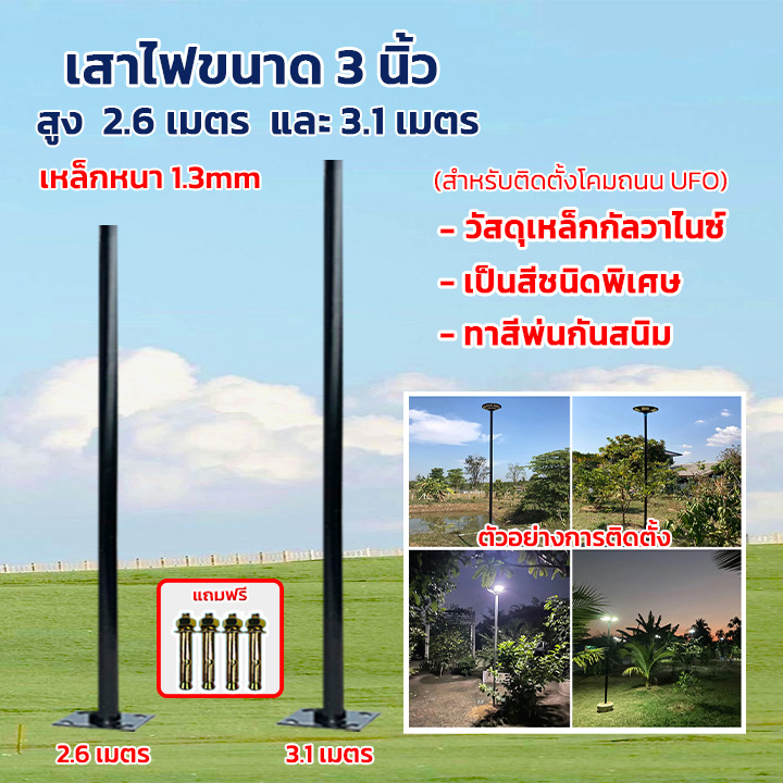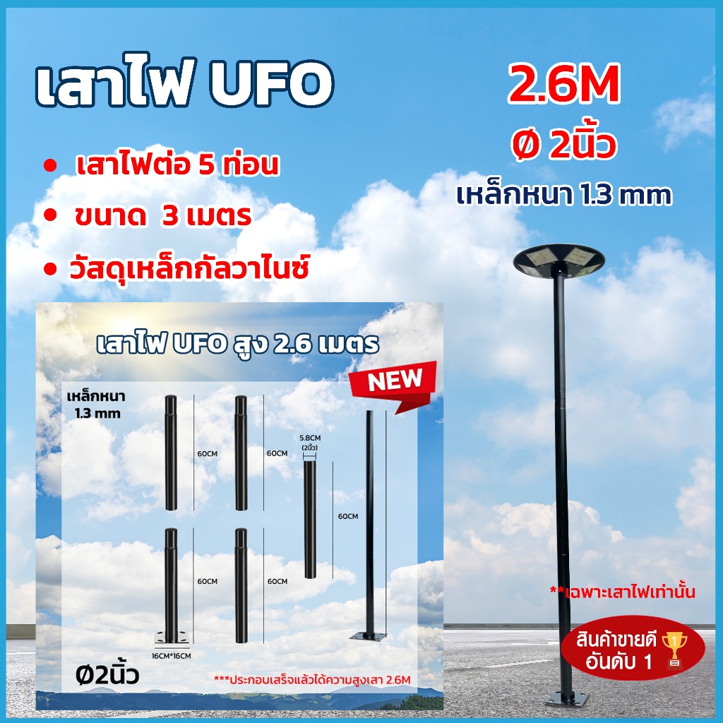 เสาไฟโซล่าเซลล์เสาไฟUFO Street Pole 2นิ้ว 3เมต6ท่อน 2.6เมต5ท่อน และเสาไฟแบบโค้ง แถมฟรีพุกเหล็กทุกแบบ