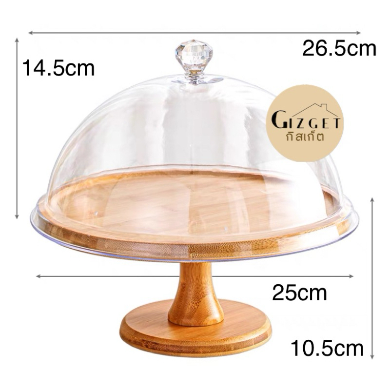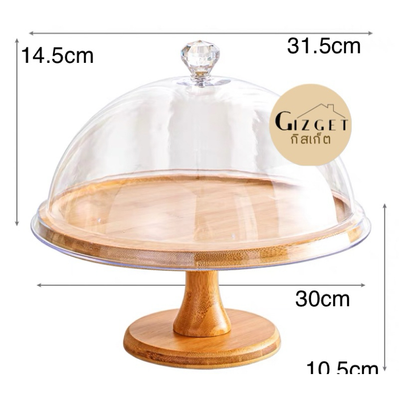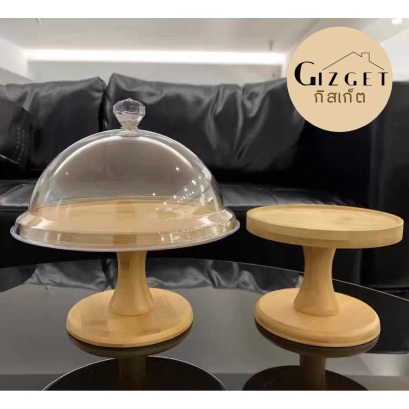 ถาดเค้ก ถาดกลม จานไม้กลมมีฝาปิด
