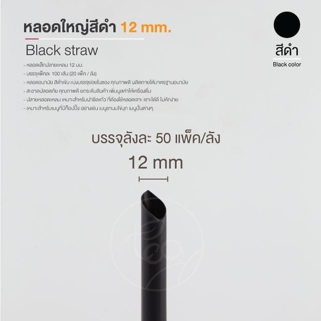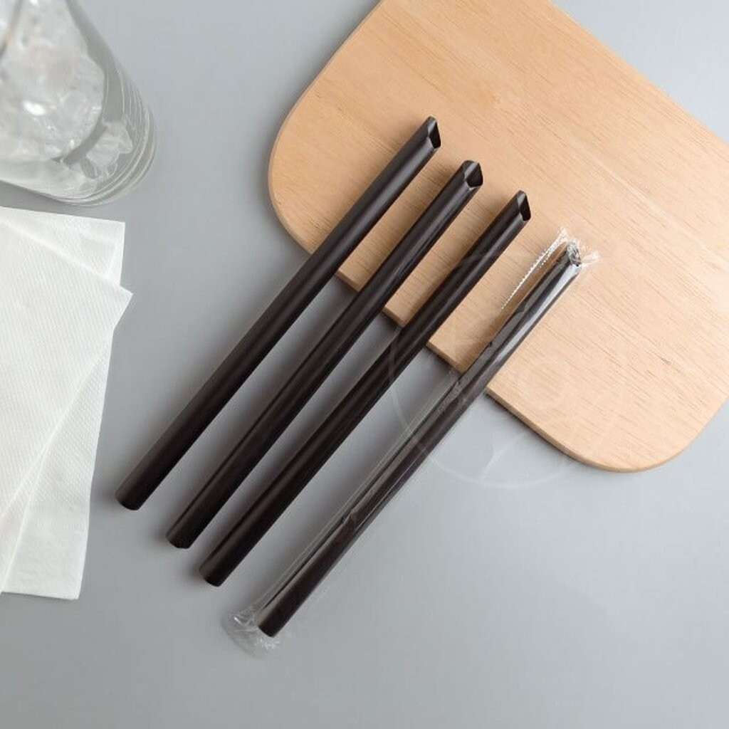 [ยกลัง] หลอดดูดน้ำ สีดำ ทรงตรง หลอดใหญ่ หลอด12มิล หลอดพลาสติก ห่อฟิล์ม หลอดชานม ดูดไข่มุก 20แพ็ค/ลัง