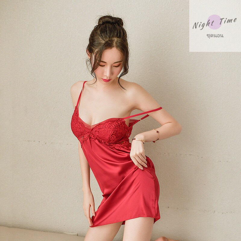ชุดนอนซาติน ชุดนอนสายเดี่ยว เซ็กซี่ ผ้าซาตินมัน ลื่น เงา XL สำหรับผู้หญิง N-261 ราคาส่ง