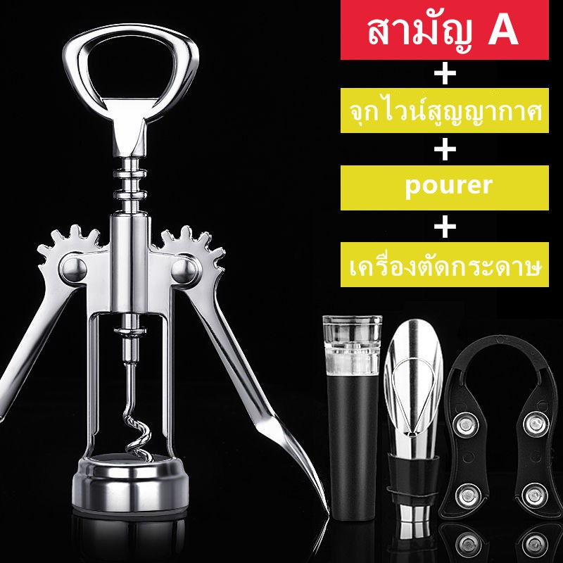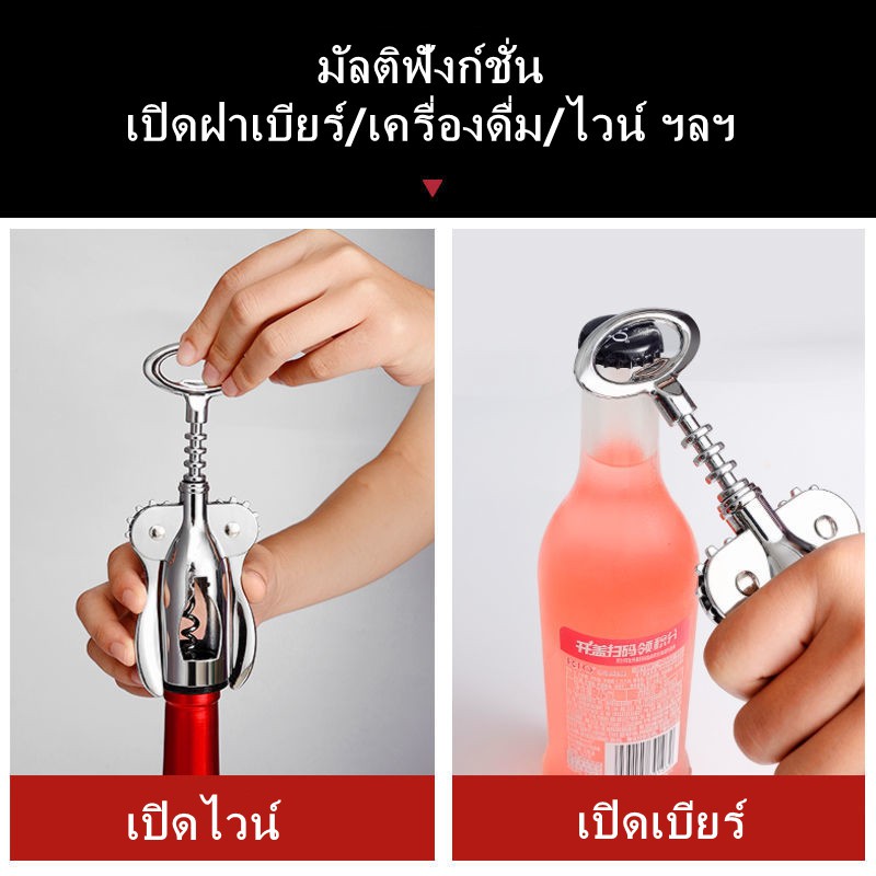🍻ที่เปิดไวน์ เปิดฝาขวดเบียร์ เหล็กไขจุก+จุก+เทไวน์+ปลั๊กสูญญากาศ ครัวเรือน บาร์เทนเดอร์ บาร์ มัลติฟังก์ชั่น
