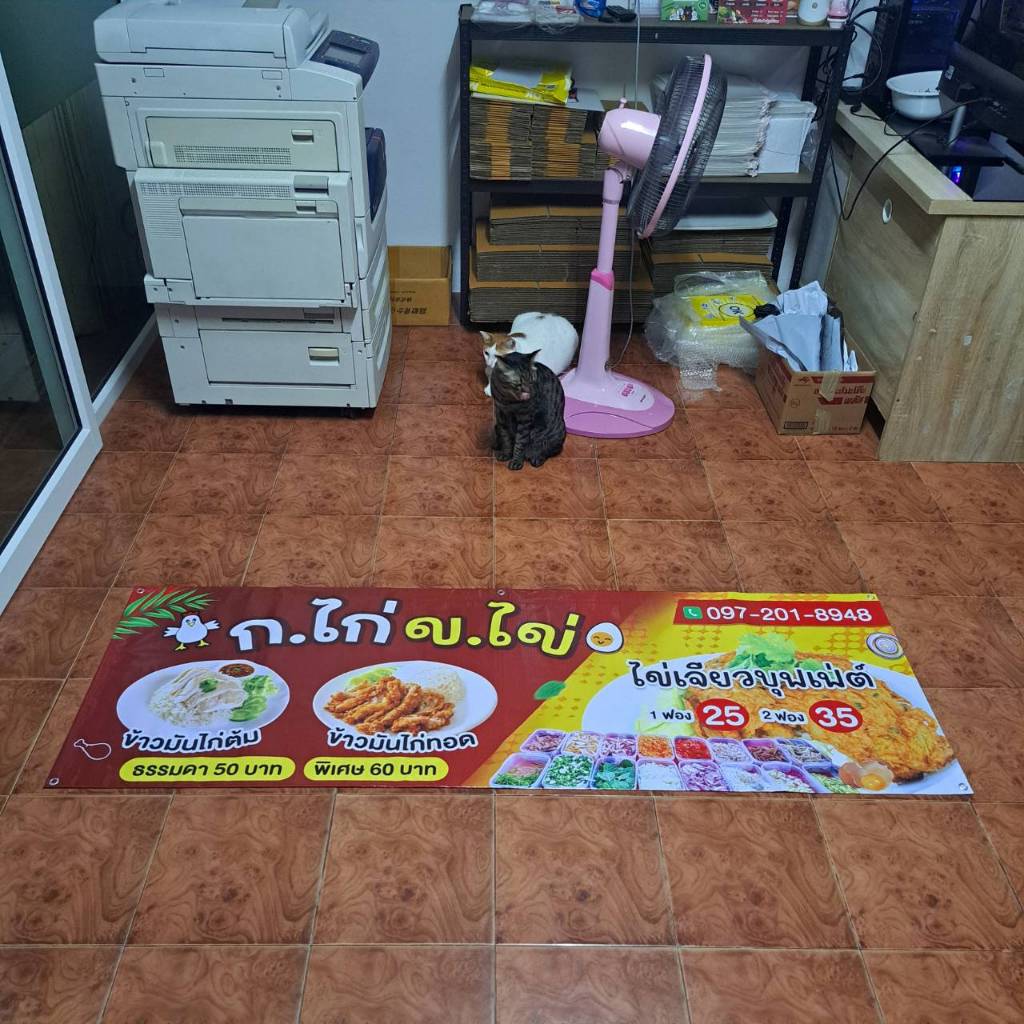 ป้ายไวนิลเจาะตาไก่ ออกแบบฟรี