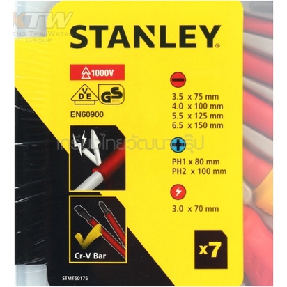 STANLEY ชุดไขควงหุ้มฉนวน 6 ชิ้น และ ไขควงวัดไฟ รุ่น 60-175 ได้รับการทดสอบกระแสไฟ 1,000 โวลต์